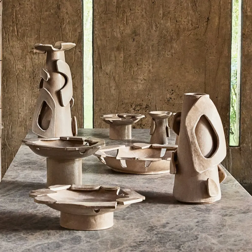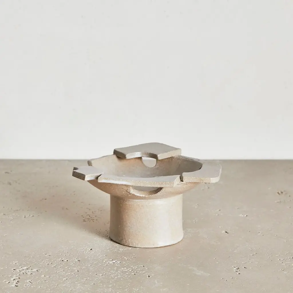 Hand-glazed in Smokey Plum and Frosted Flax, Contour Collection effortlessly pivots between art and design. Concurrently timeless and versatile, the Compote Dish serves the dual-purpose of a display dish or object d’art. Based in Los Angeles, Morgan Peck launched her namesake multidisciplinary ceramic studio in 2011 where the ceramic artist produces mirrors, lamps, sculptures and vases in her own backyard. Taking a freehand approach, Morgan applies an amalgam of design styles to her work, hinting at the Memphis Group, Bauhaus, and Art Deco.