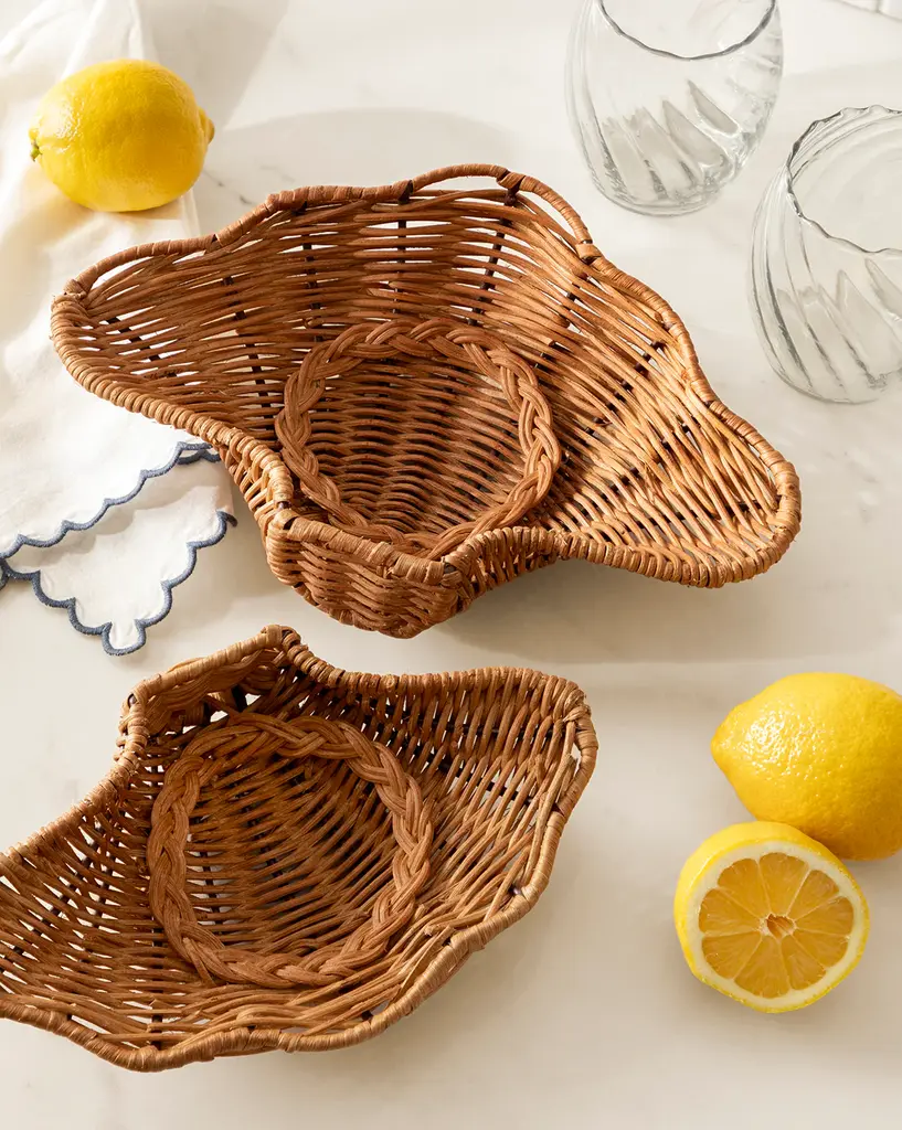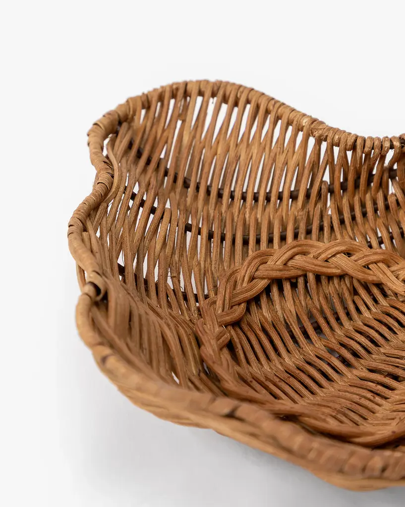 Handwoven from caramel rattan, Sharland England's Concha Dish adds texture and warmth to any space. Its organic shape makes it perfect for styling on a coffee table, console, or kitchen counter.