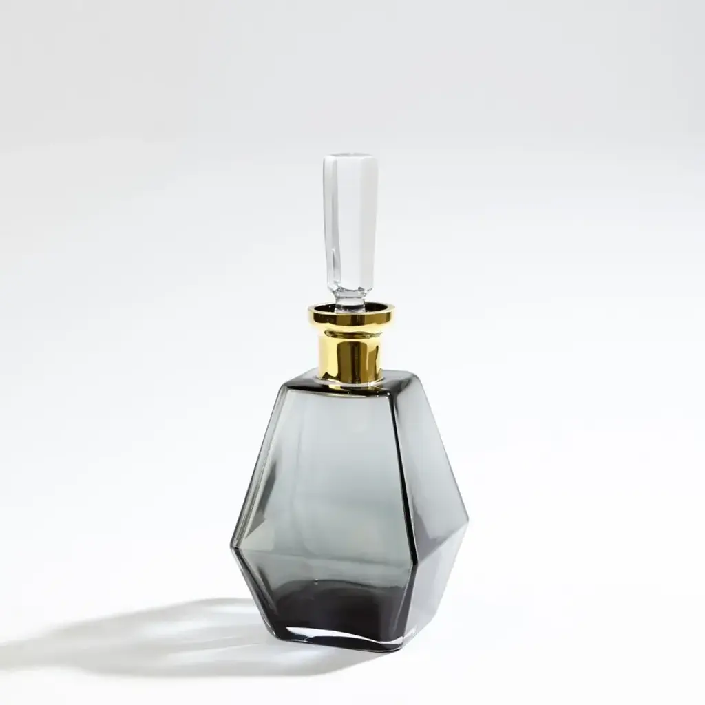 Crystal clear glass has been shaped to form our optic and chic Prism Decanter. A radiant 24k band has been added for a touch of opulence. From a fashion forward perspective, Global Views offers accessories, furniture, statement lighting, and an assortment of rugs and mirrors to add beauty and joy to your home.