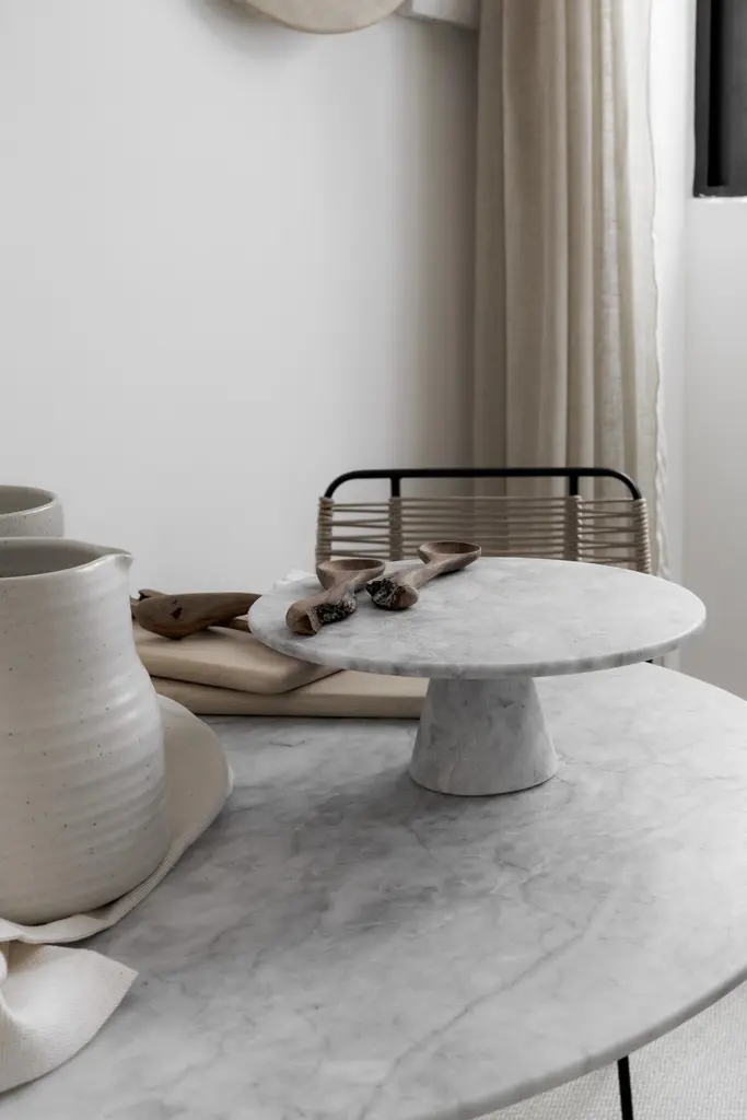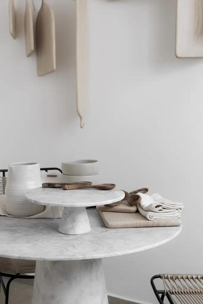 Cake stand in carved Veneciano white marble. Handmade in Mexico. Production time: 6-8 weeks for items without marble / 13-14 weeks for marble pieces. Shipping +10 additional business days. Casa Quieta uses natural materials such as woods, stones, fabrics etc. These materials may vary in tone, veining, and cavities due to their natural origin. This is part of the inherent beauty of materials and is not considered a flaw. Due to the artisan nature of our production process, there is a +/- 3mm measurement tolerance.