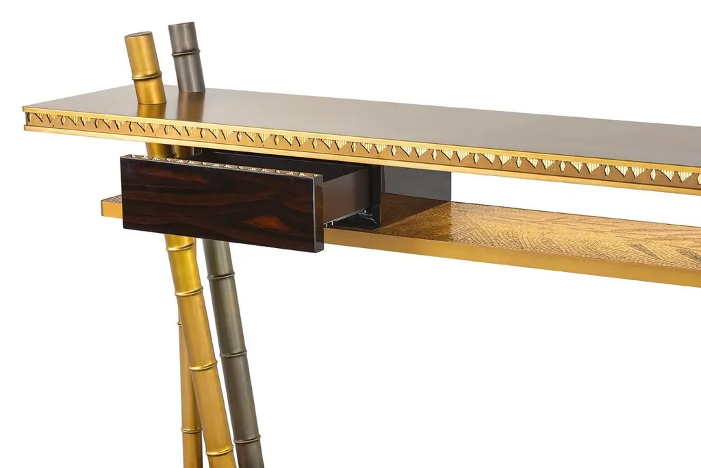 Console Legs Antique Bronzed Brass Top Brass Plate With Mosaic Edge Glossy Ebony
