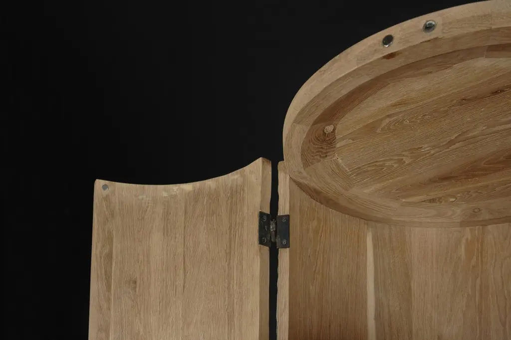 Contemporary Brutalist 'Column', Cupboard In Solid Oak, Light