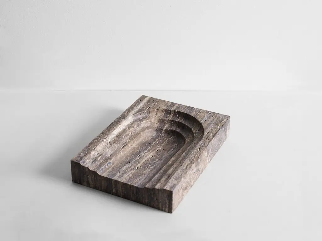 Contemporary Coffee Travertine Block Dish With Arched Details By Henry Wilson