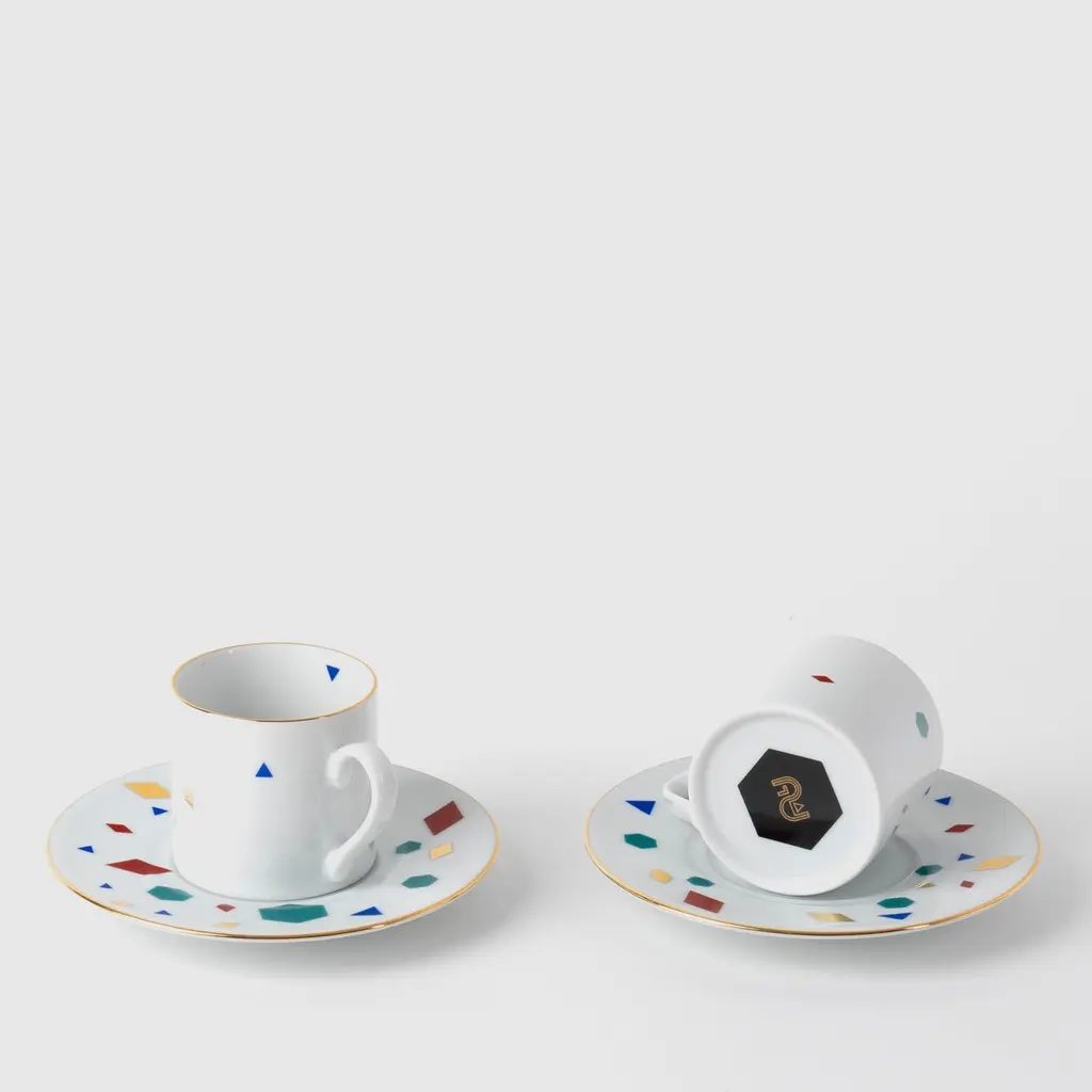 Contemporary Modern, ÇIni Decorated Porcelain Coffee Cup &Saucer 90ml, Set Of 2