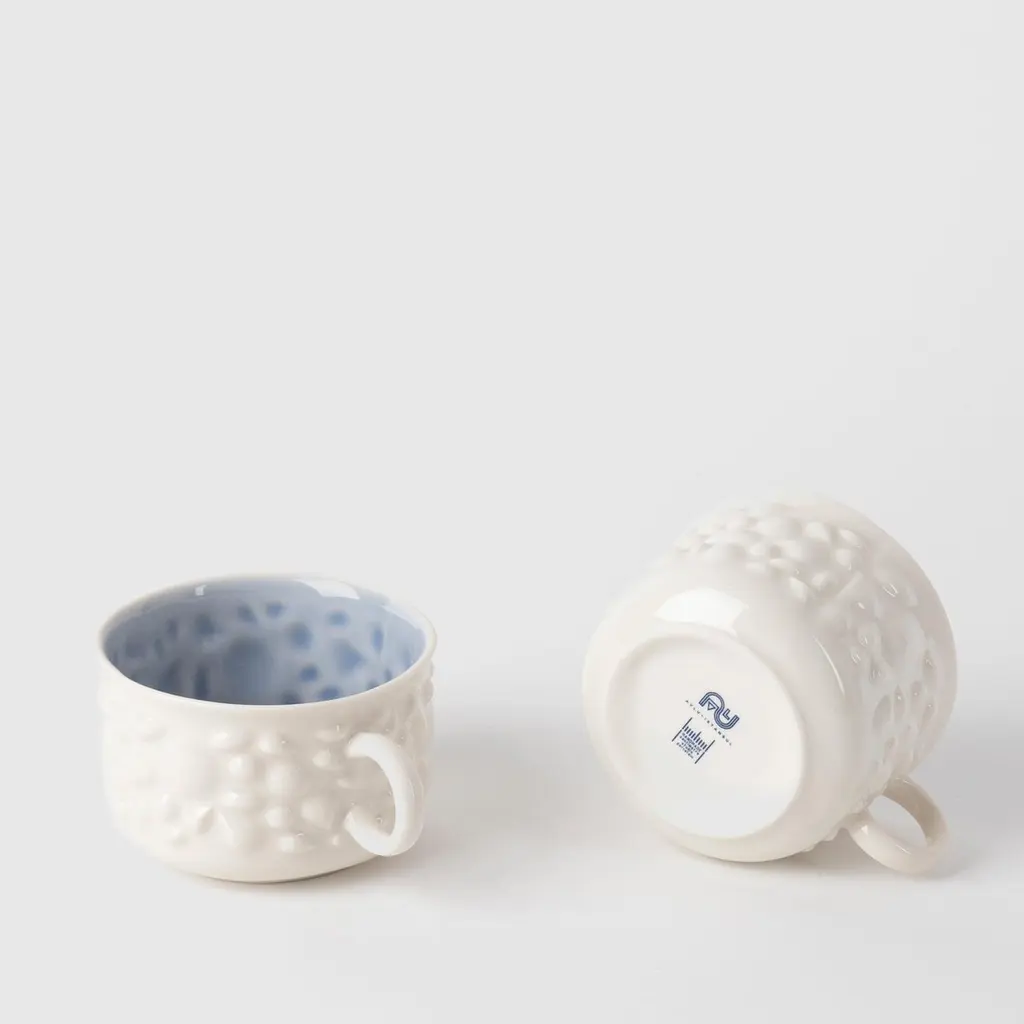 Contemporary Modern, Justine Porcelain Cappuccino Cup With Handle, White & Blue