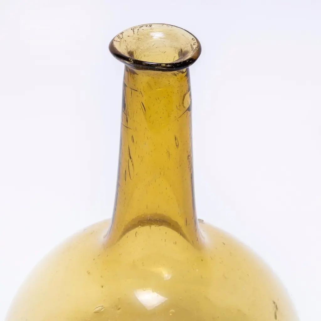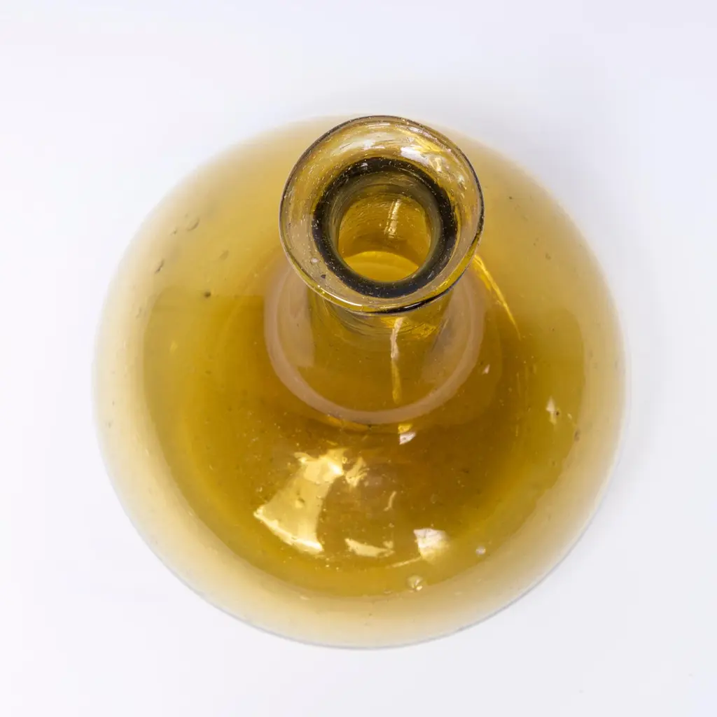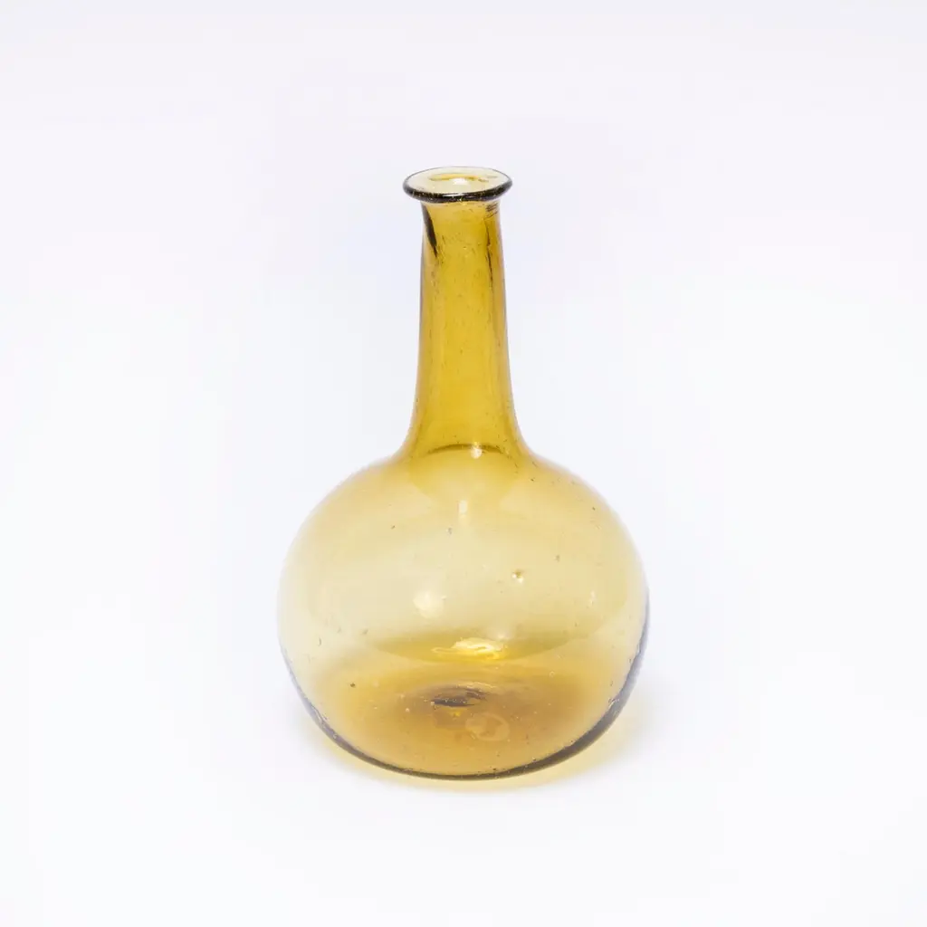 Contemporary Mouth Blown Moroccan Carafe - Ochre. Hand-made in Morocco. The glass is mouth blown and available in a beautiful ochre colour. Due to the artisanal quality of production colours may vary. Listing is for one jug.Workshop Report:Delicate handmade product do not machine wash or subject to temperature extremes.Date:21st CenturyMaker:Handmade - MoroccoDimensions:14cm(w) x 14cm(l) x 20cm(h)