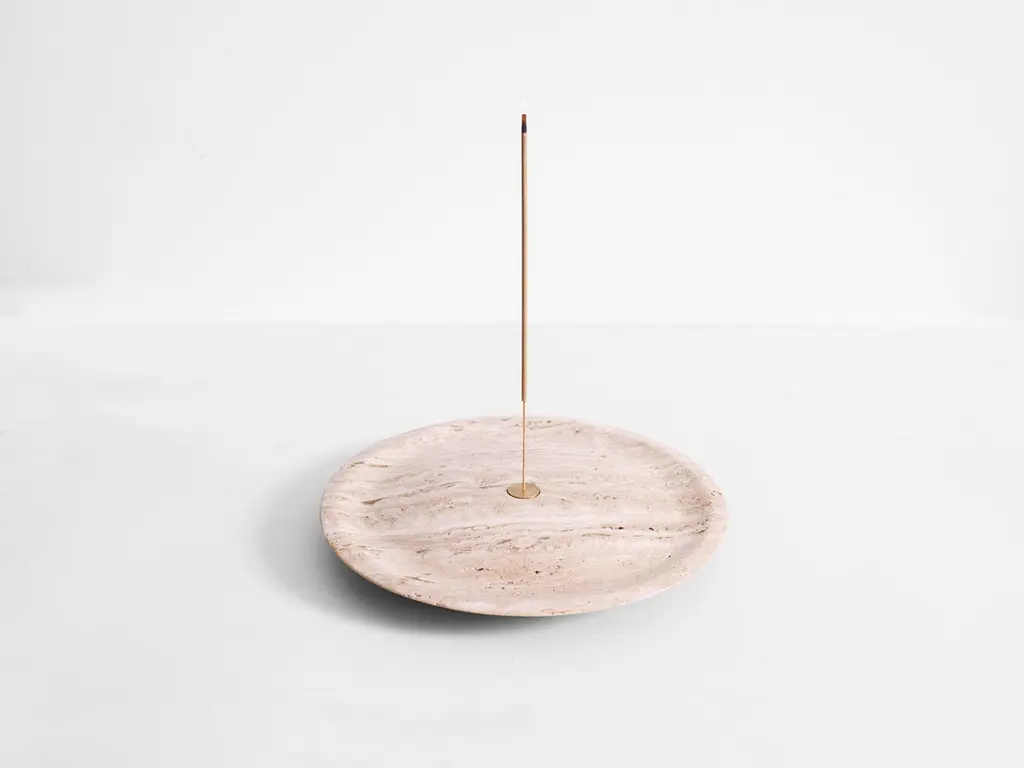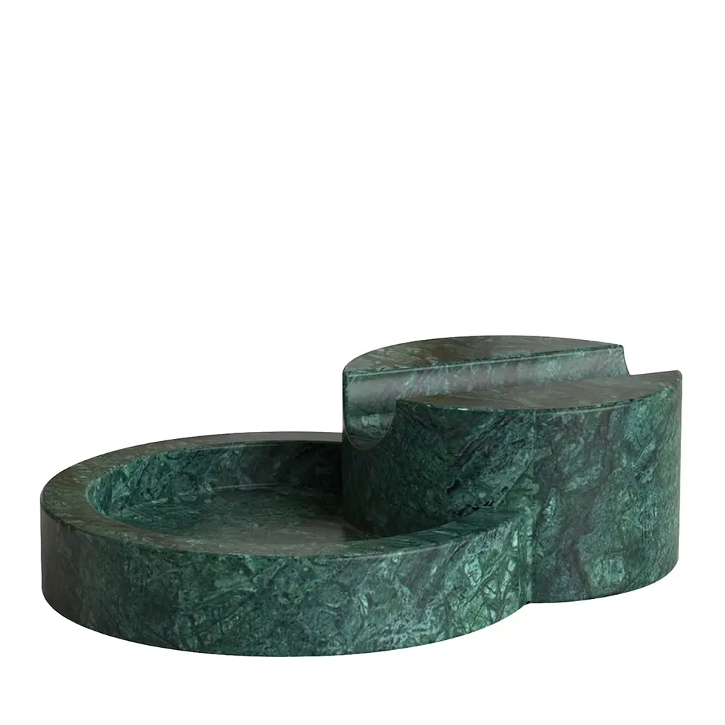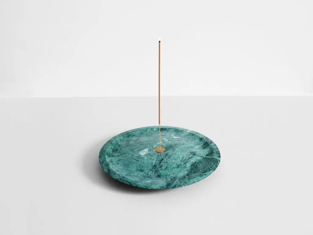 Green Guatemala Incense Plate by Henry WilsonDimensions: D 28 x H 4 cmMaterials: Green Guatemala MarbleThe Incense plate is carved from solid Green Guatemala marble and uses a central brass insert to hold incense sticks. The insert is double sided, one side for thin incense sticks, and one side for thicker incense sticks.Ash gathers calmly at the base.Henry Wilson's work combines a rational, democratic utility with an element of sculptural expression. There is a clear form and function in our products, but it’s important they also have feeling. We are interested in the awkward beauty that comes from something made by hand. We like to explore how imperfection can be introduced into an Industrial process, to make something at scale that retains a sense of individual charm.Permanent collections and exhibitions- Museum of Applied Arts and Sciences, Sydney, Australia- Art Gallery of Western Australia, Perth, Australia- 'Sempering' XXI Triennale, MUDEC, 2016, Milan, Italy.