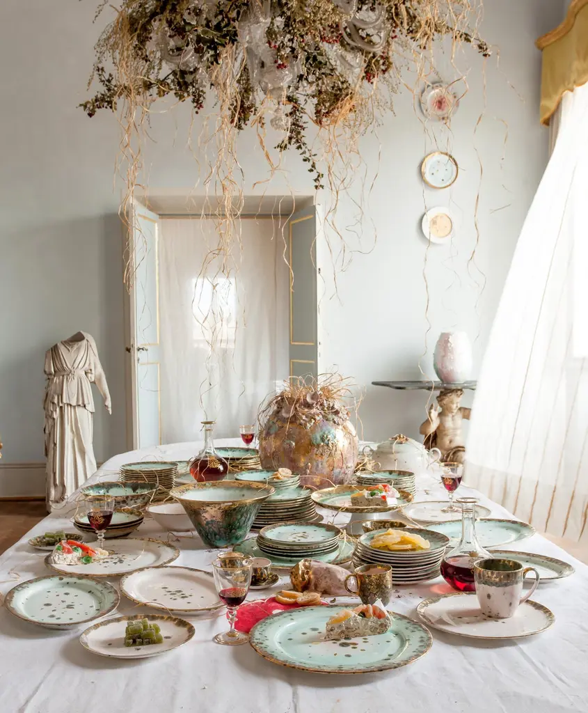 Hand painted in Italy from the finest porcelain, this medium-sized Michelangelo oval plate is material and earthy, like the great Renaissance Master's work. It conveys classical beauty and elegance. The green enameled shade fades as it moves away from the rim towards a light pink center. Golden and green dots and splotches float like leaves on a romantic pond. The rim is surrounded by a broad golden decor.Medium oval rim plate, Ø 36 x 24cmVilla Borghese, Michelangelo collectionHand painted porcelain24-karat gold hand paintedMade in ItalyFirst introduced at Milan Design Week 2018, the Michelangelo Collection is named after a hall of the Borghese Gallery in Rome and evokes the eternal beauty of Renaissance and Baroque art, underlined by the golden finishes. Each Coralla Maiuri product is entirely hand decorated. Each is a work of art. While ensuring consistency, they are never identical. Slight variations of decor and color from one to another are not only normal, but to be expected as a sign of their uniqueness.Other sizes are available for the Michelangelo Collection.For large quantities, production lead time to be confirmedEven if all our tableware products are suitable for dishwasher machines, for long term conservation we warmly recommend to favour non-aggressive soap and delicate washing.Due to the presence of real 24-karat gold, this item is not suitable for microwave.