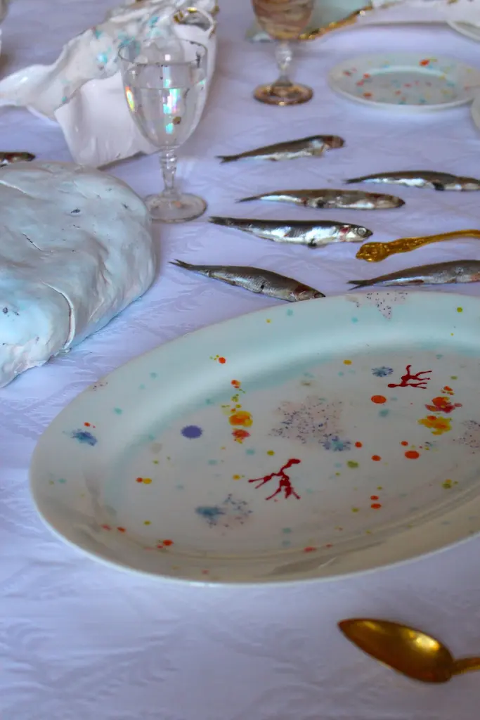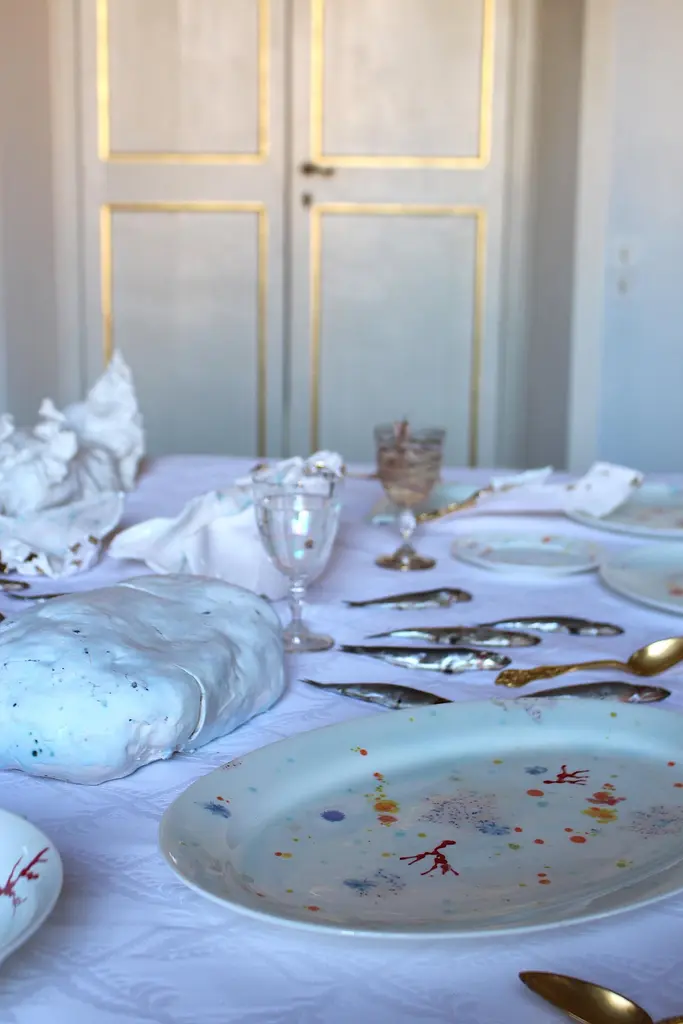 Handcrafted in Italy from the finest porcelain, this blue seabed rim oval platter has corals lying on a bright bottom surrounded by mysterious multicolored gems floating amid brushes of light pink sand sprinkled with black dots.Blue seabed rim oval platter, measure: Ø 36 x 24cm - 14.2 x 9.4inSeabed collection, whiteHand painted porcelainMade in ItalyFirst introduced at Milan Design Week 2018, the Seabed collection paints the bottom of the sea as seen through a lens.Each Coralla Maiuri product is entirely hand decorated. Each is a work of art. While ensuring consistency, they are never identical. Slight variations of decor and color from one to another are not only normal, but to be expected as a sign of their uniquenessFor large quantities, production lead time to be confirmedSuitable for dishwasher and for microwave oven.