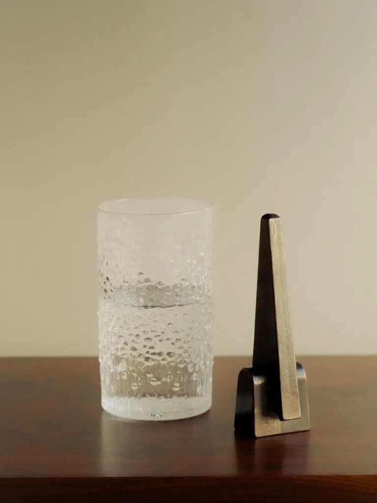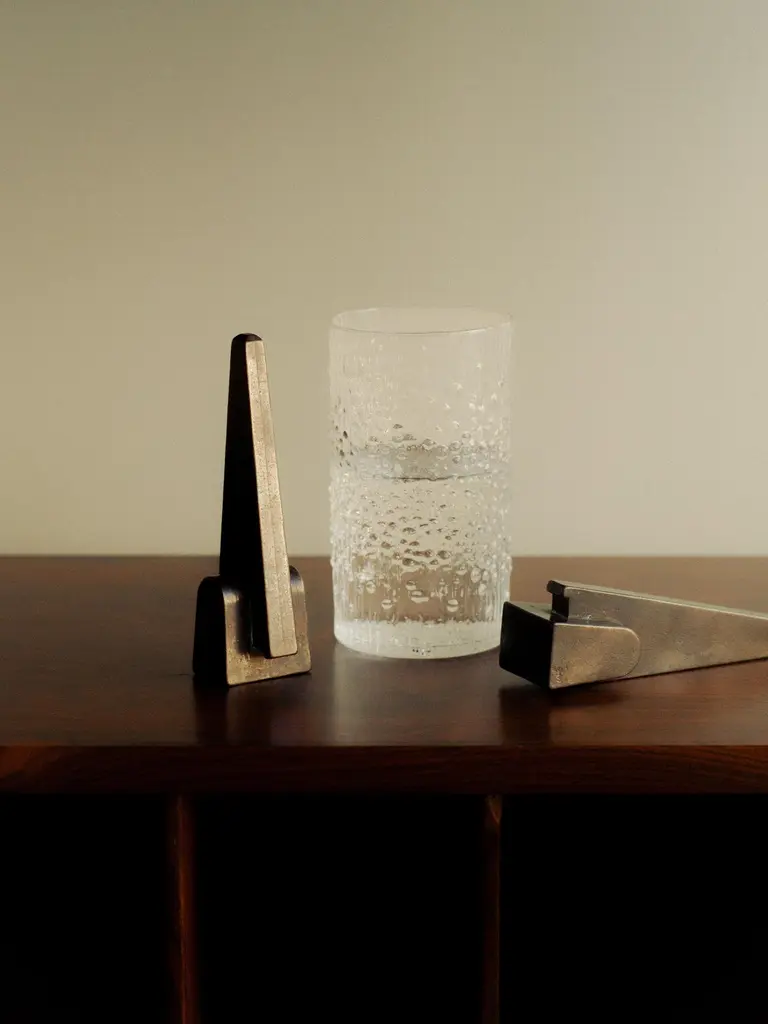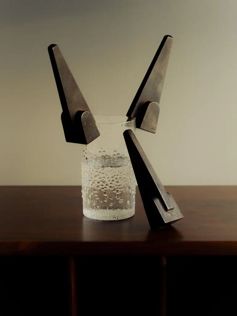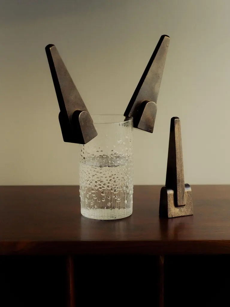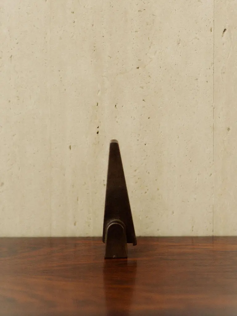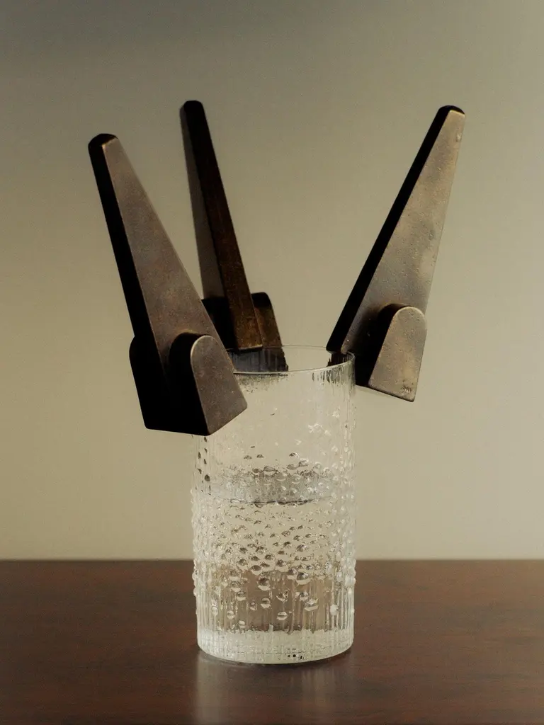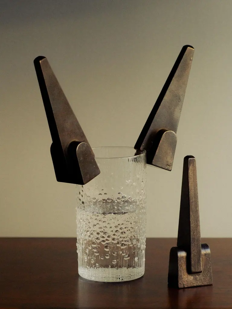 Prise Patinated Bronze Bottle Opener by Henry WilsonDimensions: W 3,6 x D 3,5 x H 12 cm.Materials: Bronze.Available in patinated and blackened finishes. Please contact us.Prise Bronze Bottle Opener’s design embodies a playful ambiguity, merging elements of mid-century sculpture and familiar industrial tools. A highly sculptural reframing of a utilitarian, often unremarkable essential, this is not an object to be tucked away in your kitchen drawer, but one to sit where its bold form can be duly appreciated.Each piece is manufactured by a small-scale art foundry in Sydney, using the centuries-old technique of lost wax casting; then hot-patinated and sealed in restoration wax to facilitate a rich, dark, tarnish-resistant surface, before being punched with a maker's mark. The lengthy finishing process replicates that used by sculpture greats such as the English artist Henry Moore, renowned for his monumental post-war bronze works.The nature of the casting and finishing processes means slight variations will occur from one piece to another. Production marks may include slight pour ripples or surface pitting. The original finish will oxidize and darken to reveal a distinctive patina. If preferred, use a quality micro-crystalline wax polish.Crafted, finished, and polished in Sydney, Australia.Henry Wilson's work combines a rational, democratic utility with an element of sculptural expression. There is a clear form and function in our products, but it’s important they also have feeling. We are interested in the awkward beauty that comes from something made by hand. We like to explore how imperfection can be introduced into an Industrial process, to make something at scale that retains a sense of individual charm.
