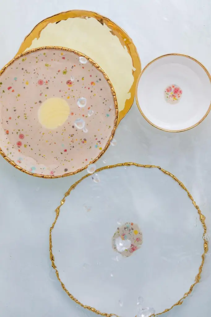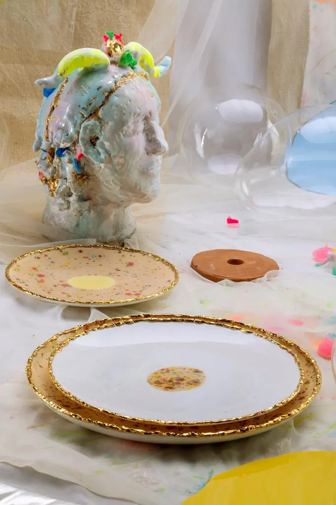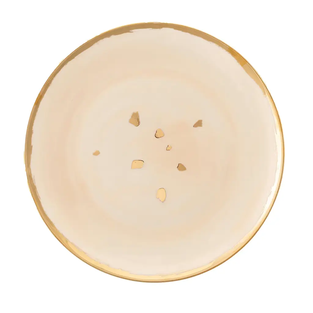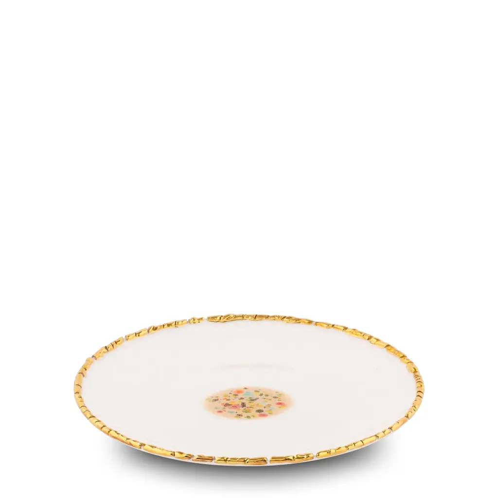 Handcrafted in Italy from the finest porcelain, theses white Craquelé edge dessert coupe plate from the Chestnut collection have an original golden craquelé rim emphasizing the brilliant white glaze and the sandy, dotted décor at the center.Set of 2 white craquelé edge dessert coupe plates, measure: Ø 22cm - 8.7inPiazza del Popolo, Chestnut collectionHand painted porcelain24-karat gold hand paintedMade in ItalyThe Piazza del Popolo collection is named after a Roman landmark, at the heart of Roman everyday life, and inspired by traditional, simple Italian artisanal pottery yet decorated in a personal and elegant key.Each Coralla Maiuri product is entirely hand decorated. Each is a work of art. While ensuring consistency, they are never identical. Slight variations of decor and color from one to another are not only normal, but to be expected as a sign of their uniqueness.For large quantities, production lead time to be confirmedEven if all our tableware products are suitable for dishwasher machines, for long term conservation we warmly recommend to favour non-aggressive soap and delicate washing.Due to the presence of real 24-karat gold, this item is not suitable for microwave.