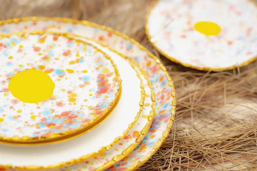 Handcrafted in Italy from the finest porcelain, these white craquelé edge soup coupe plates from the Confetti Collection have an original golden crackled rim emphasizing the brilliant white glaze and the lively multi-color dotted decoration at the center.Set of 2 white craquelé edge soup coupe plates, measures: Ø21 - 8.3 x 1.8inPiazza del Popolo, Confetti CollectionHand painted porcelain24-karat gold hand paintedMade in ItalyFirst introduced at Milan Design Week 2018, the Piazza del Popolo Collection is named after a Roman landmark, at the heart of Roman everyday life, and inspired by traditional, simple Italian artisanal pottery yet decorated in a personal and elegant key. Each Coralla Maiuri product is entirely hand decorated. Each is a work of art. While ensuring consistency, they are never identical. Slight variations of decor and color from one to another are not only normal, but to be expected as a sign of their uniqueness.For large quantities, production lead time to be confirmedEven if all our tableware products are suitable for dishwasher machines, for long term conservation we warmly recommend to favor non-aggressive soap and delicate washing.Due to the presence of real 24-karat gold, this item is not suitable for microwave.