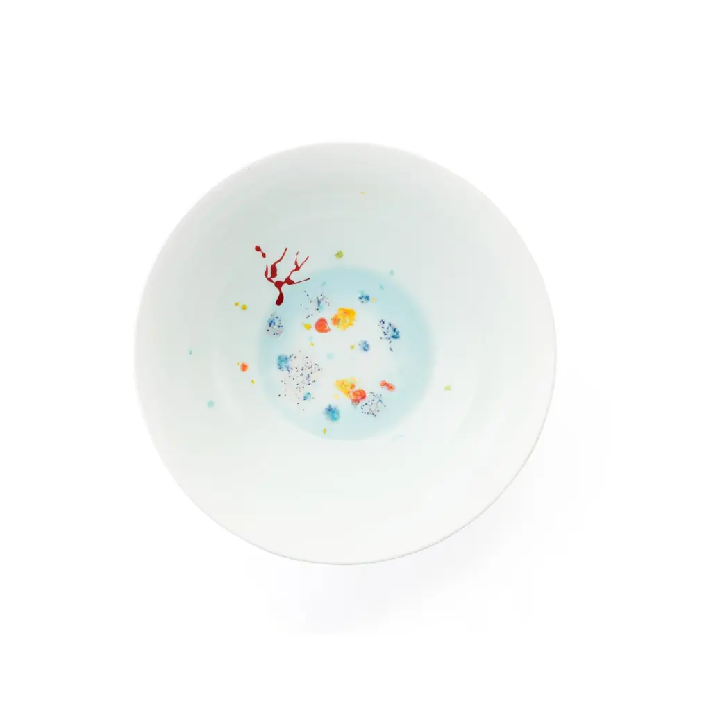 Handcrafted in Italy from the finest porcelain, these blue seabed soup coupe plates have corals lying on a bright bottom surrounded by mysterious multicolored gems floating amid brushes of light pink sand sprinkled with black dots.Set of 2 blue seabed soup coupe plates, measure: Ø 22cm - 8.7inSeabed collectionHand painted porcelainMade in ItalyFirst introduced at Milan Design Week 2018, the Seabed collection paints the bottom of the sea as seen through a lens.Each Coralla Maiuri product is entirely hand decorated. Each is a work of art. While ensuring consistency, they are never identical. Slight variations of decor and color from one to another are not only normal, but to be expected as a sign of their uniquenessFor large quantities, production lead time to be confirmedSuitable for dishwasher and for microwave oven.