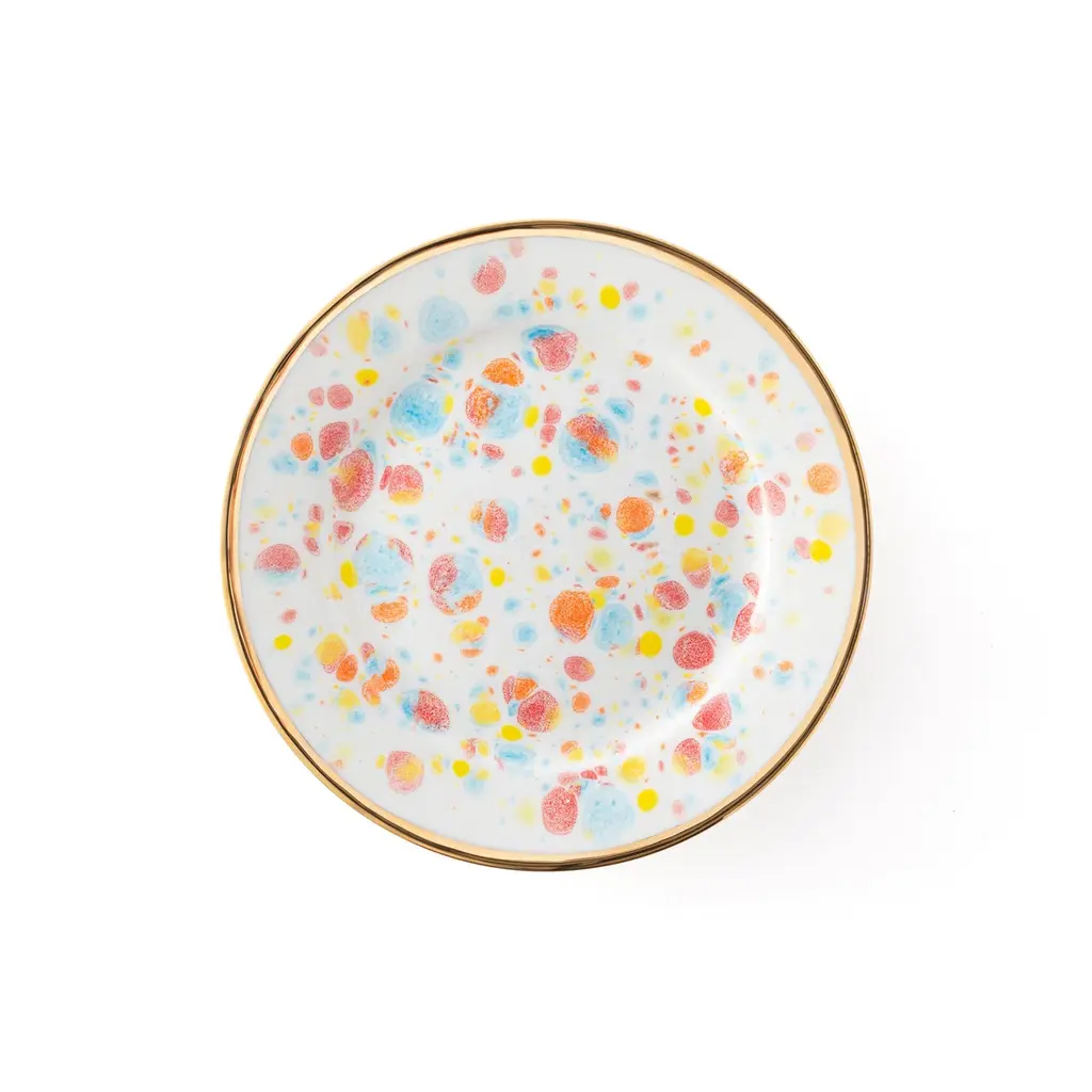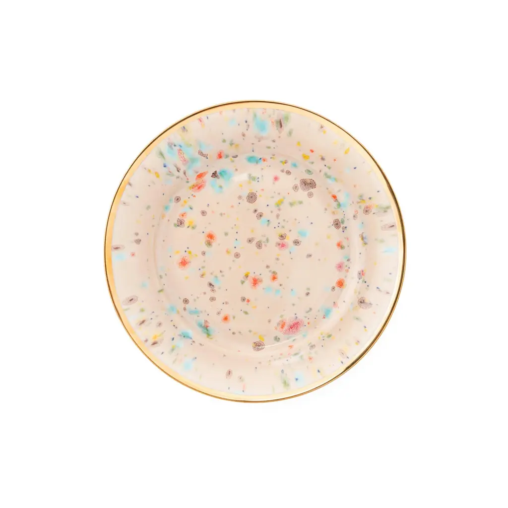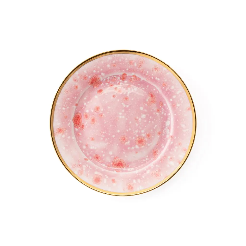 The Piazza del Popolo collection is named after a Roman landmark, at the heart of Roman everyday life, and inspired by traditional, simple Italian artisanal pottery yet decorated in a personal and elegant key. Set of 4 Bread Rim Plates, Ø 17cmPiazza del Popolo CollectionHand painted porcelainHand painted 24-karat goldMade in ItalyEach Coralla Maiuri product is entirely hand decorated. Each is a work of art. While ensuring consistency, they are never identical. Slight variations of decor and color from one to another are not only normal, but to be expected as a sign of their uniqueness.Other sizes are available for the Piazza del Popolo Collection.For large quantities, production lead time to be confirmedEven if all our tableware products are suitable for dishwasher machines, for long term conservation we warmly recommend to favour non-aggressive soap and delicate washing.Due to the presence of real 24-karat gold, this item is not suitable for microwave.