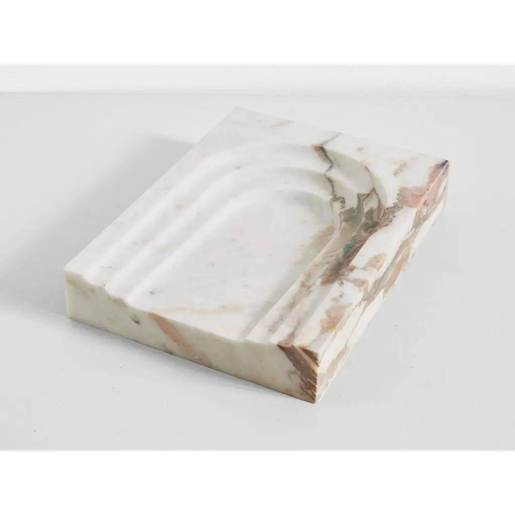 Contemporary White And Pink Marble Block Thoronet Dish By Henry Wilson