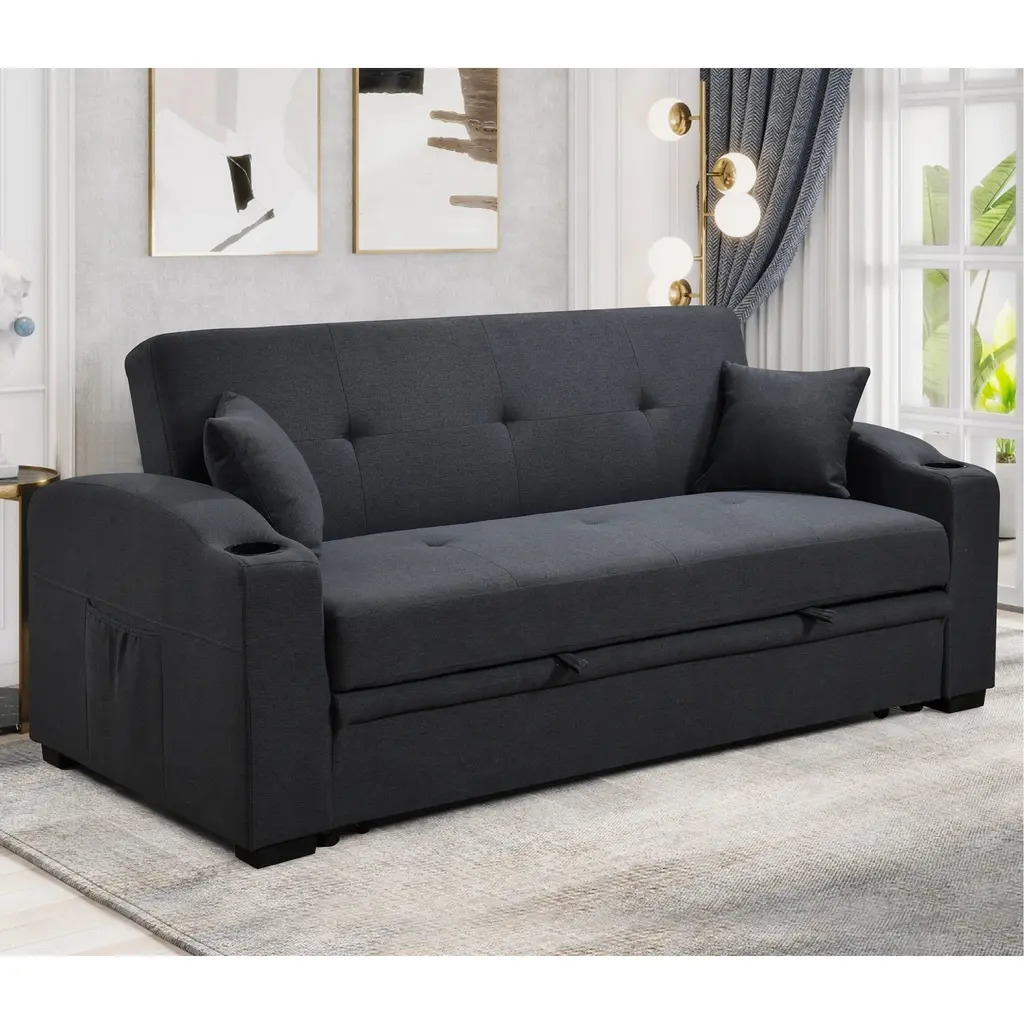 【Convert Quickly】Cozy sofa by day, spacious sleeper by night. With simple pull-out action, couch bed effortlessly expands into a cozy bed for guests or sleepovers.【Ultimate Comfort】Sinuous springs provide durable support beneath cushions. Thick backrest make lying as if wrapped, this couch sleeper takes your comfort to a new level.【3 ADJUSTABLE BACKREST 】Perfect for any occasion, three backrest settings let you enjoy meaningful conversations, watch a long-awaited sports event, or even count sheep in a peaceful slumber.【New Design】The spacious armrest features hidden storage compartments for your extra messy items, remote control or book, etc.