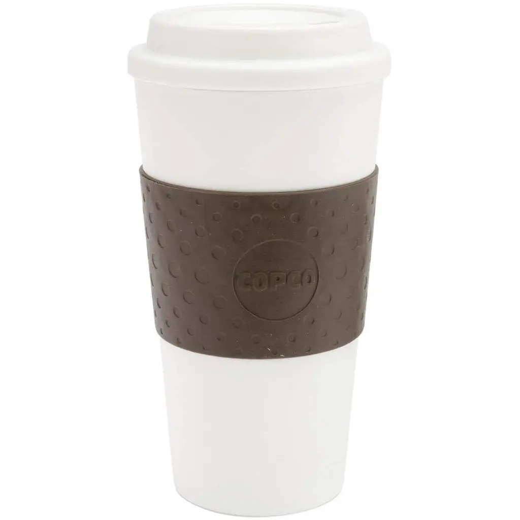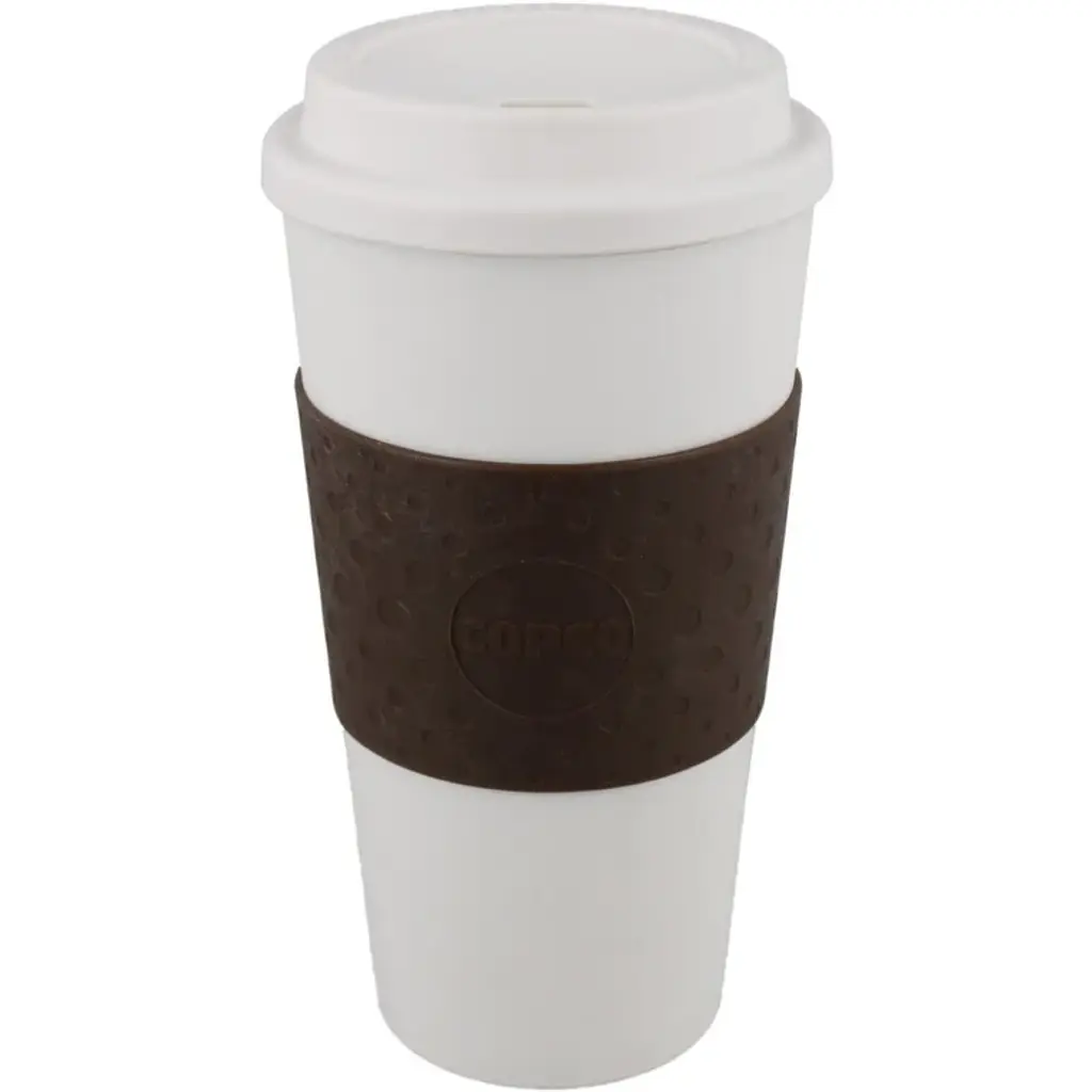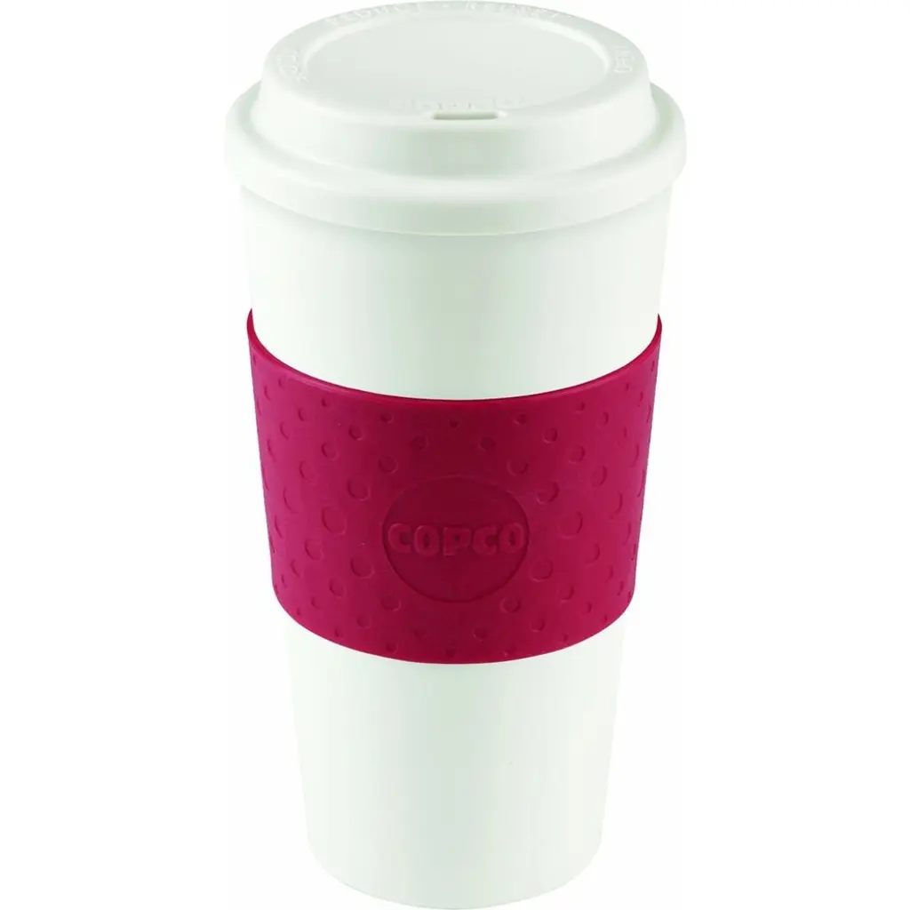 Copco Acadia Reusable To Go Mug Oz 4 Pack - NewCopco's reusable travel cup combines function and sleek design and easily replaces paper and Styrofoam coffee cups. Double-wall insulation keeps beverages hot or cold. Made from durable, Bpa-free plastic. The cup comes with a textured, non-slip sleeve. A quarter-turn lid sealing design helps prevent leaks and spills. Able to hold up to 16 ounces, the cup is microwave and dishwasher-safe. Set comes with 4 white travel mugs with colored easy grip non slip sleeves.Product specificsCompatibility: N/AOverall - Size: 16 oz. capacityMaterial: PlasticModel - Part Number: 5286816Brand: CopcoWarranty: N/A