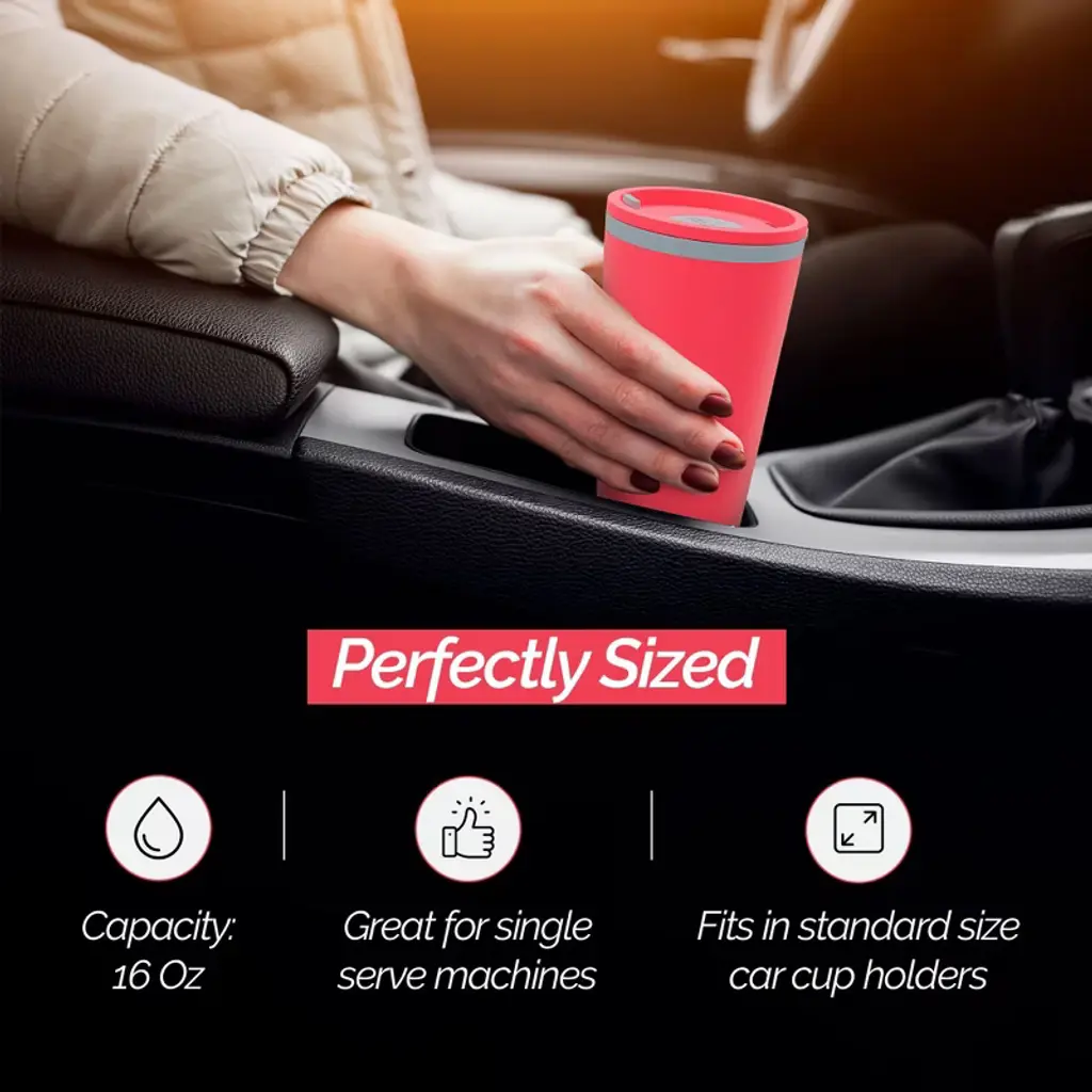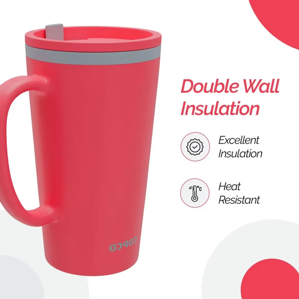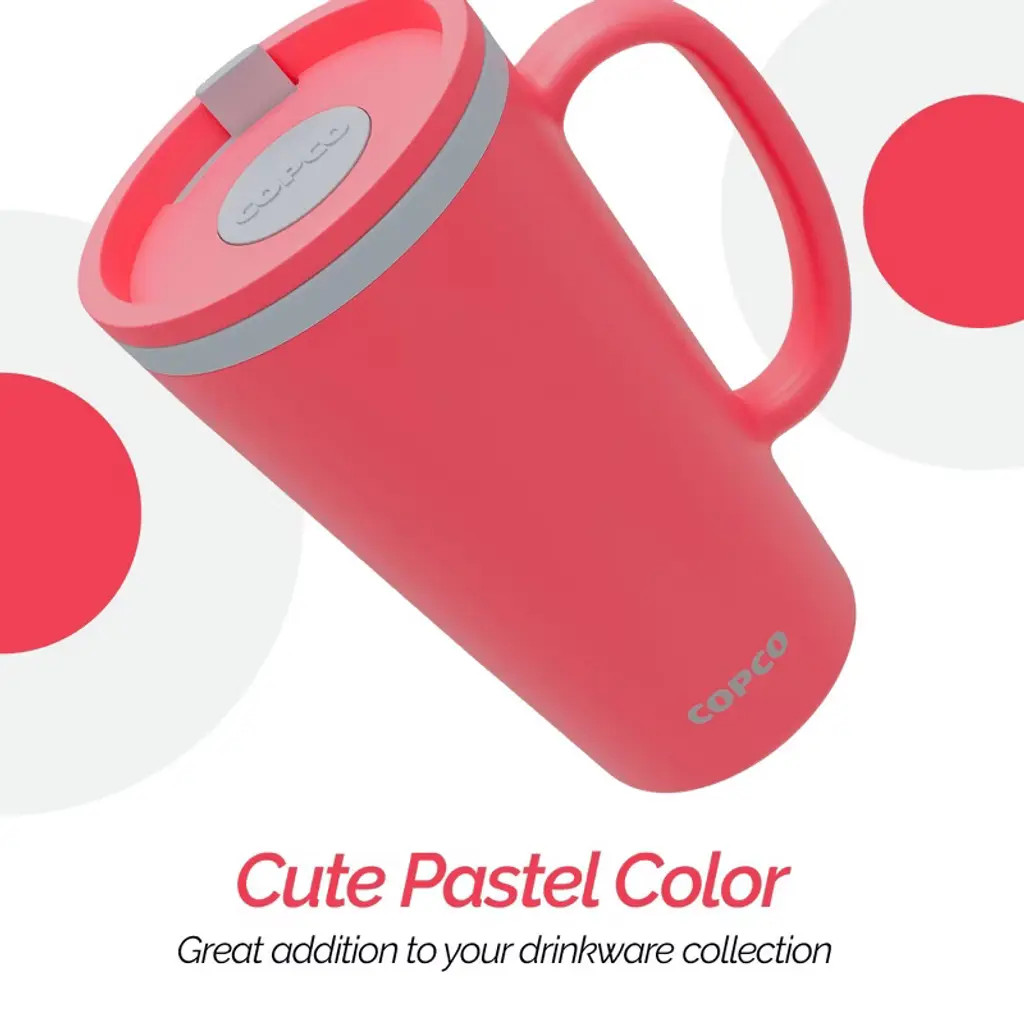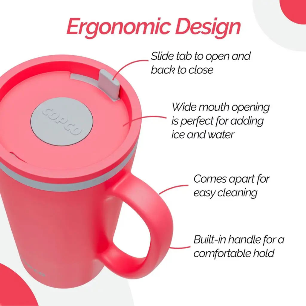 Copco Cone 16oz Insulated Travel Mug With Handle, Double Wall, Slide-closure Lid, Bpa-free, Microwave & Dishwasher Safe (Coral Red)