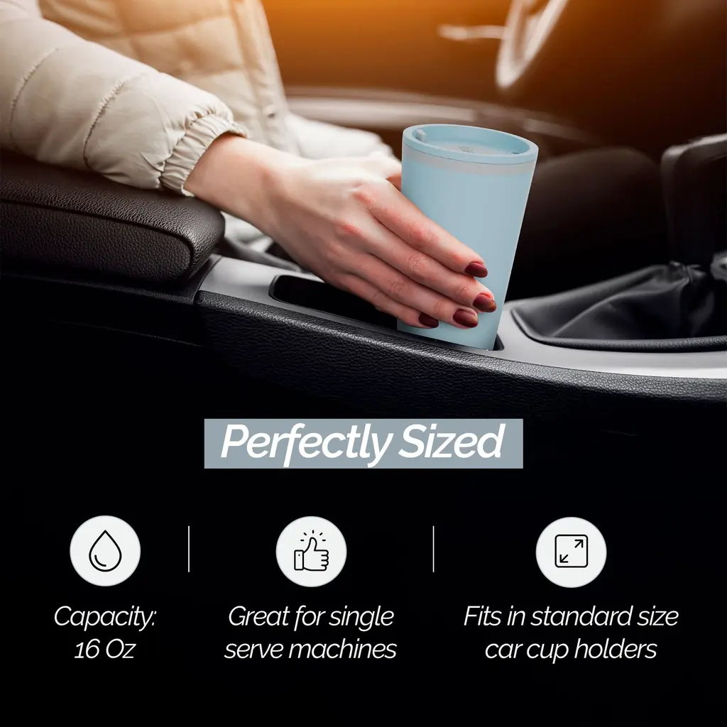 Copco Cone Travel Coffee Mug, 16 oz - Insulated Drinkware with Spill-Proof Lid and Handle, Microwave & Dishwasher Safe - BPA-Free, Compact for Desk & Cup Holder Friendly - NewThe Copco Cone Travel Coffee Mug is an essential piece of insulated drinkware designed to make your daily beverage routine more enjoyable and convenient. With a 16-ounce capacity and double wall insulation, this mug keeps your favorite hot or cold drinks at the perfect temperature for longer, whether you’re at your desk, in the car, or relaxing at home. This travel mug is designed for practicality, featuring a compact shape that fits comfortably into most car cup holders and under pod coffee machines for easy refills. The leak-resistant lid ensures spill-free use, while the ergonomic handle offers a secure, comfortable grip for sipping on the move or at your workspace. Constructed from BPA-free materials, this microwave and dishwasher safe mug simplifies your day by allowing easy reheating and hassle-free cleaning. The durable and stylish finish adds a touch of modern elegance to your drinkware collection, making it both functional and visually appealing. Whether you’re enjoying coffee during your commute or sipping tea at your desk, this insulated travel coffee mug adapts to your lifestyle. Perfect for a wide variety of beverages, including coffee, tea, and iced drinks, it’s a versatile solution for staying hydrated and energized throughout the day. Elevate your drinkware collection with the Copco Cone Travel Coffee Mug - the ideal choice for keeping your favorite beverages at the right temperature while offering the convenience and style you need for your busy life.FEATURES:MATERIAL:WHAT'S IN THE BOX:PACKAGING: Retail Packaging