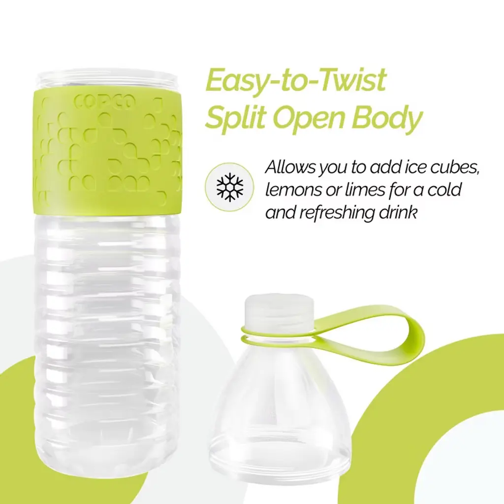 Stay hydrated wherever life takes you with the Copco Hydra 20-Ounce Reusable Tritan Water Bottle, designed to provide durability and convenience. Made from BPA-free Tritan, this bottle is crafted to be long-lasting and safe for everyday use, allowing you to enjoy your beverages without the worry of harmful chemicals. Its spill-resistant sealing lid ensures that your drinks stay securely inside, so you can toss it in your bag without worrying about leaks. The twist-open body makes it easy to fill and add ice cubes or fruit, giving you a refreshing way to stay hydrated. Its 20-ounce capacity is compact yet sufficient, easily fitting into most standard cup holders, gym bags, and backpacks. For added grip and stability, the bottle is equipped with a textured, non-slip sleeve that helps you maintain a secure hold, even when you're on the go. Designed with convenience in mind, it's also dishwasher safe for easy cleaning, though hand washing is recommended to maintain its vibrant colors over time. Choose the Copco Hydra water bottle to reduce single-use plastic waste and enjoy a convenient, reliable way to stay hydrated every day. Available in a variety of vibrant colors, it’s designed to meet the demands of an active lifestyle while adding a touch of style to your daily routine. Fill, drink, wash, and hydrate!