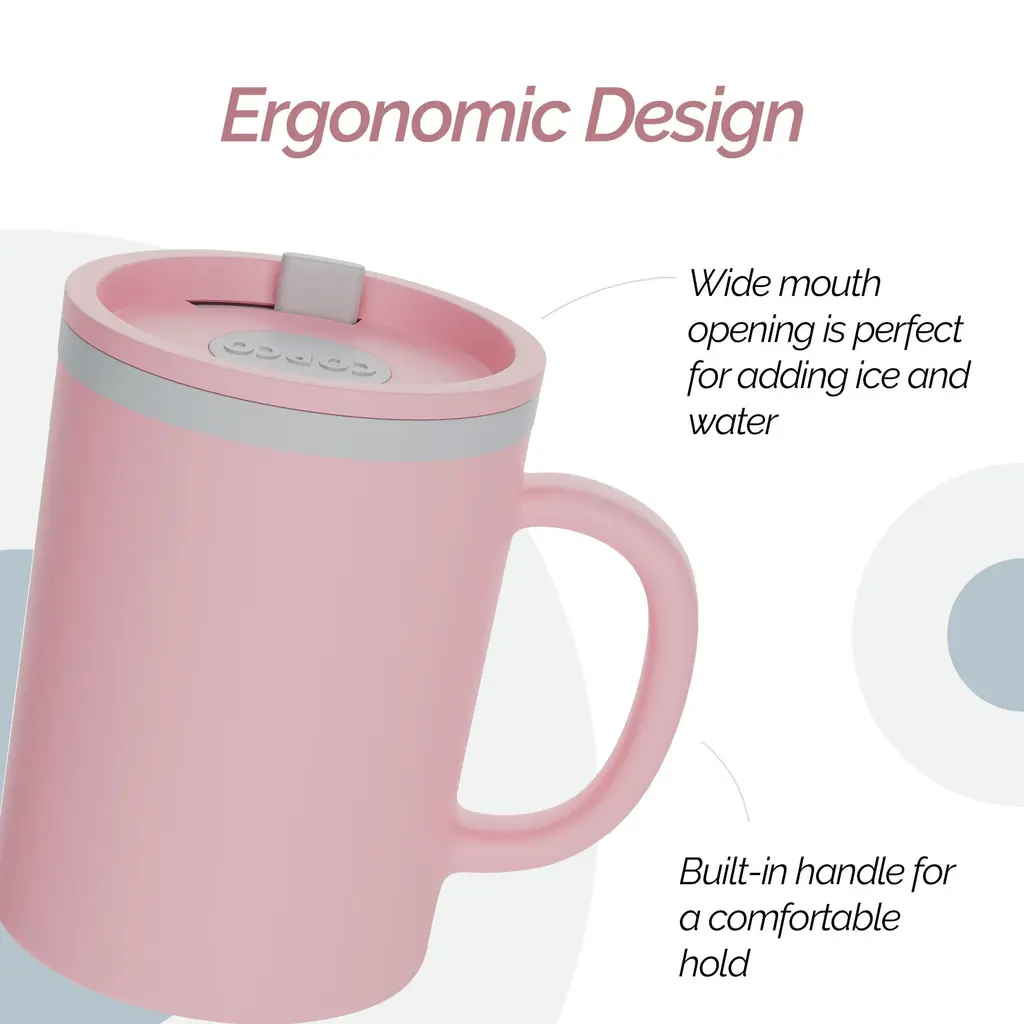 Copco Iconic 16 oz. Mug Set of 2 - NewThe Copco Iconic Mug holds the perfect iconic shape and is perfectly designed to fit under your "Pod" machines. Constructed with double wall insulation which keeps your beverages hot, fresh and tasty. The mug has a capacity of 16 ounces. Made out of BPA free plastic and comes in packs of two featuring cute pastel colors. The attached handle makes it easy to hold this mug to fully enjoy your hot drink. Microwave and dishwasher safe makes clean up super easy.FEATURES:MATERIAL:WHAT'S IN THE BOX:PACKAGING: Retail Packaging