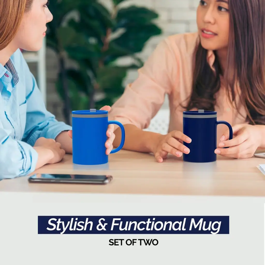 Copco Iconic 16oz Double Wall Insulated Desk Mug With Lid And Handle, Set Of 2, Bpa-free Reusable Plastic, Spill-proof - (Navy/blue)