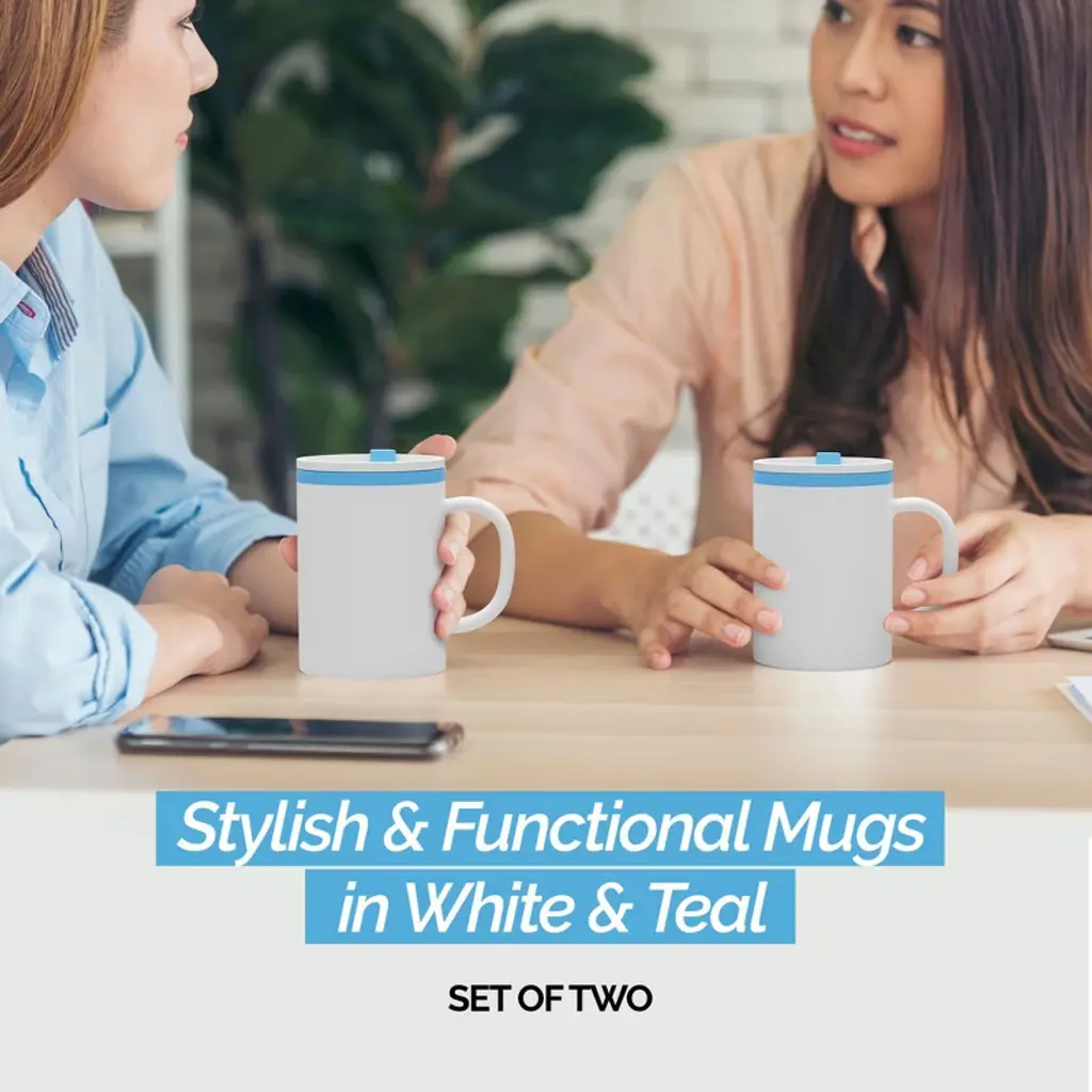 Copco Iconic 16oz Double Wall Insulated Desk Mug With Lid & Handle, Set Of 2, Bpa-free Reusable Plastic, Spill-proof - (Teal)