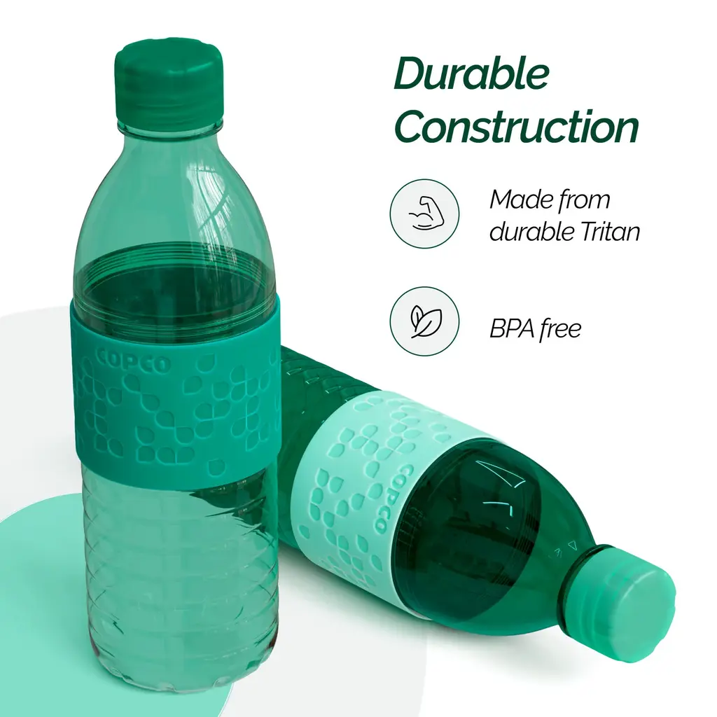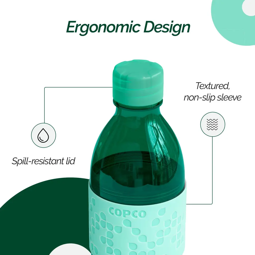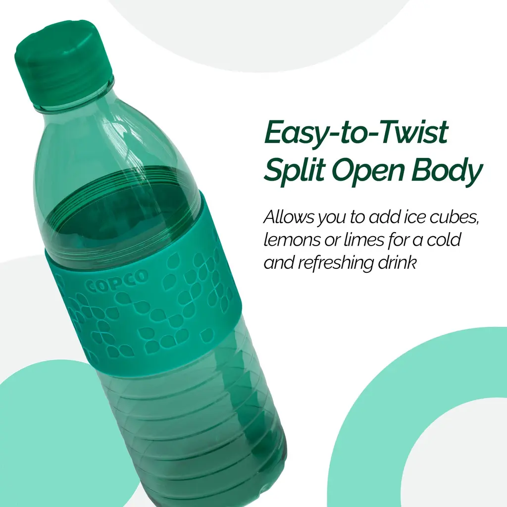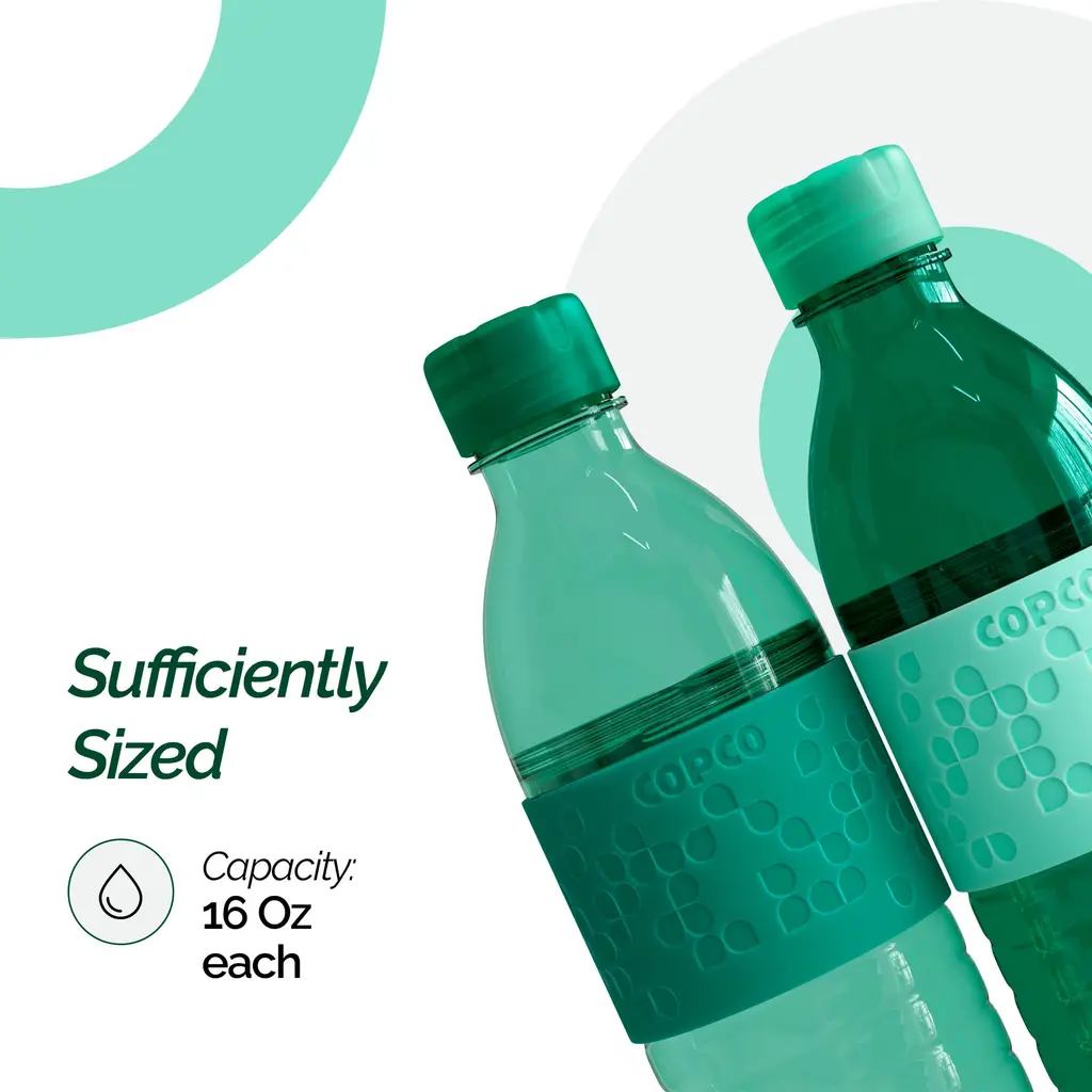 Copco Hydra 16.9oz Water Bottle, Set of 2 - Non-Slip Sleeve & BPA-Free Tritan Plastic - Dishwasher Safe, Reusable Plastic To Go Bottle - Leak-Proof, Spill-Proof, Portable Water Bottle - NewIntroducing the Copco Hydra 16.9 oz Water Bottle, the perfect solution for staying hydrated on the go. This set of two versatile water bottles is crafted from durable, BPA-free Tritan plastic, ensuring a safe and long-lasting experience. The easy-to-twist body allows you to add ice cubes or fruits like lemon and lime, keeping your beverages fresh and flavorful. With a spill-resistant lid and a textured, non-slip sleeve, these bottles are perfect for enjoying your favorite drinks wherever you are. The ergonomic design of the Copco Hydra water bottle makes it comfortable to hold and drink from throughout the day. The lightweight and durable construction ensures these clear bottles are ideal for your on-the-go lifestyle. They fit easily into your purse, briefcase, gym bag, or even your kid's school lunch box, making them perfect for hiking, sports, travel, and daily commutes. Reusable water bottles like the Copco Hydra offer unparalleled convenience and environmental benefits. By choosing a reusable option, you help reduce plastic waste and contribute to a more sustainable future. These bottles are designed to keep you hydrated throughout the day, whether you're at the office, the gym, or on an outdoor adventure. Enjoy the convenience of a portable, leak-proof, and spill-proof water bottle that is both eco-friendly and practical.FEATURES:MATERIAL:WHAT'S IN THE BOX:PACKAGING: Retail Packaging