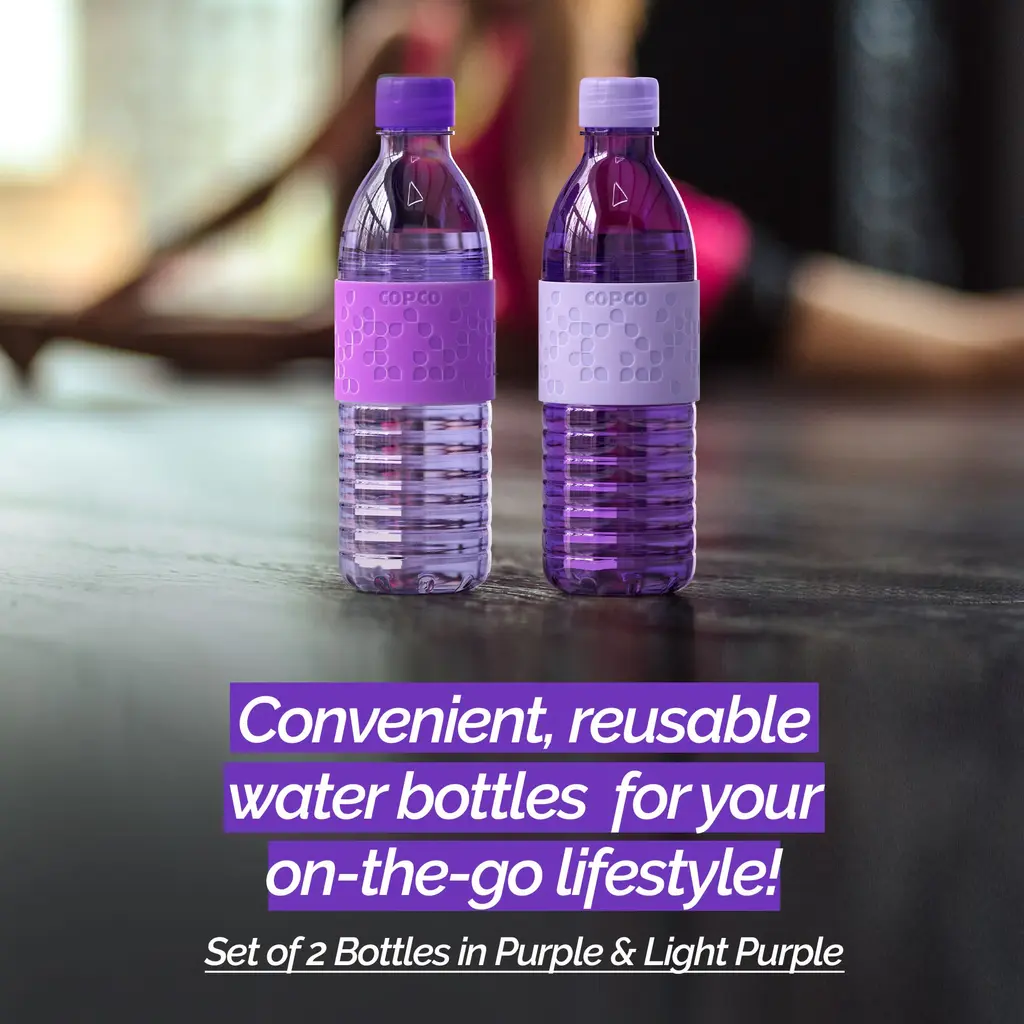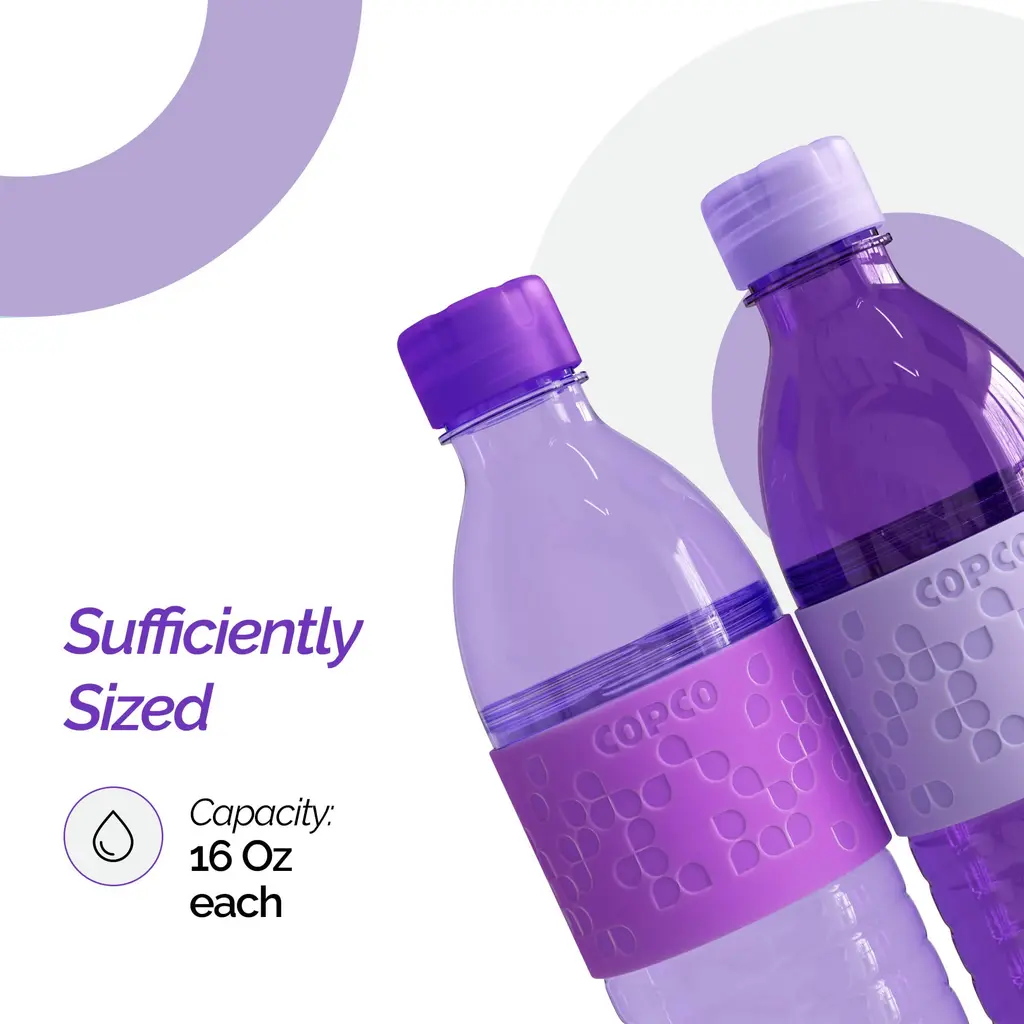 Copco Hydra 16.9oz Water Bottle, Set of 2 - Non-Slip Sleeve & BPA-Free Tritan Plastic - Dishwasher Safe, Reusable Plastic To Go Bottle - Leak-Proof, Spill-Proof, Portable Water Bottle - NewIntroducing the Copco Hydra 16.9 oz Water Bottle, the perfect solution for staying hydrated on the go. This set of two versatile water bottles is crafted from durable, BPA-free Tritan plastic, ensuring a safe and long-lasting experience. The easy-to-twist body allows you to add ice cubes or fruits like lemon and lime, keeping your beverages fresh and flavorful. With a spill-resistant lid and a textured, non-slip sleeve, these bottles are perfect for enjoying your favorite drinks wherever you are. The ergonomic design of the Copco Hydra water bottle makes it comfortable to hold and drink from throughout the day. The lightweight and durable construction ensures these clear bottles are ideal for your on-the-go lifestyle. They fit easily into your purse, briefcase, gym bag, or even your kid's school lunch box, making them perfect for hiking, sports, travel, and daily commutes. Reusable water bottles like the Copco Hydra offer unparalleled convenience and environmental benefits. By choosing a reusable option, you help reduce plastic waste and contribute to a more sustainable future. These bottles are designed to keep you hydrated throughout the day, whether you're at the office, the gym, or on an outdoor adventure. Enjoy the convenience of a portable, leak-proof, and spill-proof water bottle that is both eco-friendly and practical.FEATURES:MATERIAL:WHAT'S IN THE BOX:PACKAGING: Retail Packaging