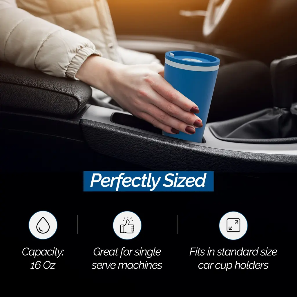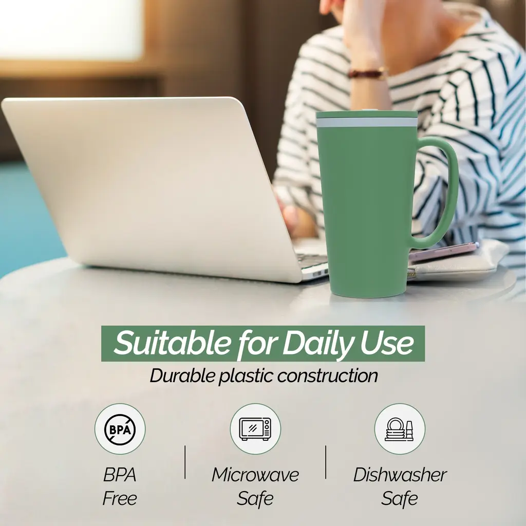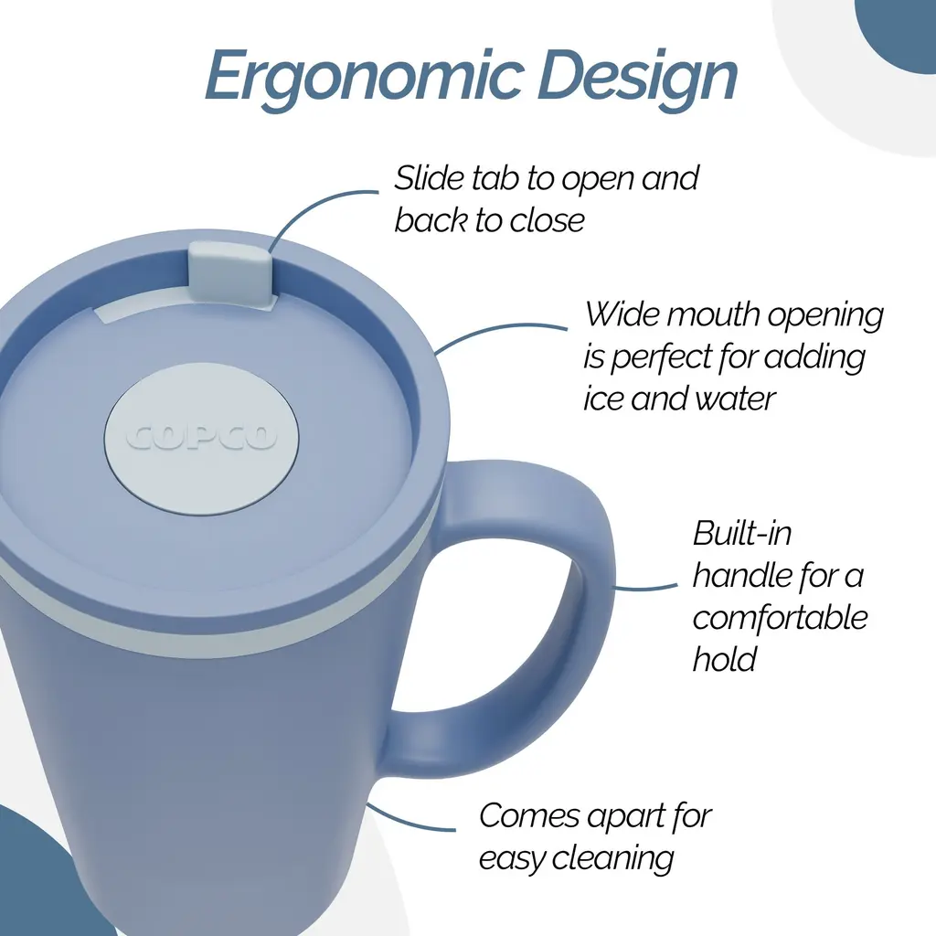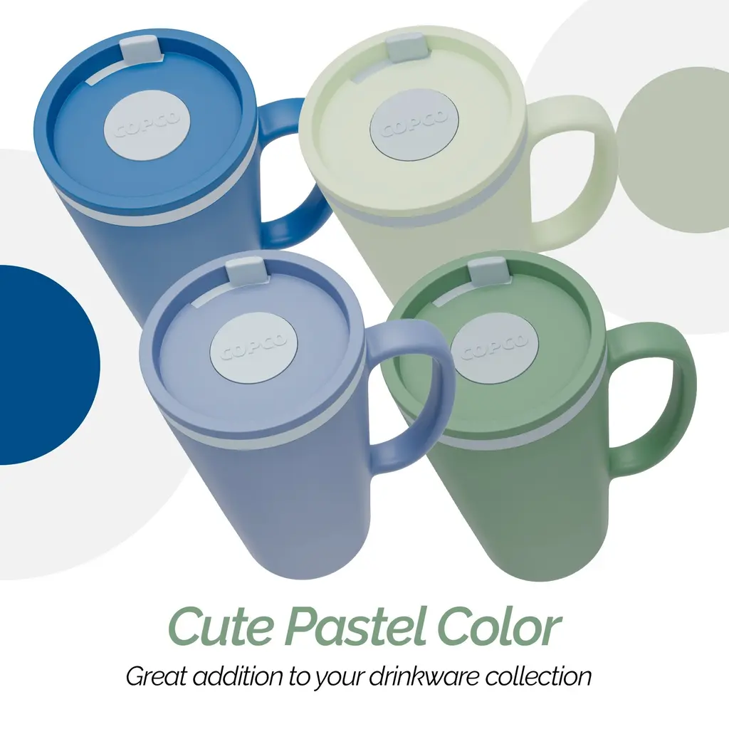 Copco Cone Desk Mug, 16 Ounce (Set of 4) - Double Wall Insulated Mug Set with Lid and Handle, Microwave & Dishwasher Safe, BPA-Free Mug, Desk-Friendly & Car Cup Holder Compatible (Assorted Colors) - NewThe Copco Cone Desk Mug, set of 4, is the ultimate solution for enjoying your beverages in style and comfort. With its 16-ounce capacity and double wall insulated desk mug design, it ensures your drinks stay hot or cold longer, making it ideal for coffee, tea, or even iced beverages. Whether you're at your desk, commuting, or relaxing at home, these mugs deliver practicality and convenience. Designed to fit seamlessly into your daily routine, these BPA-free desk mugs are microwave safe for quick reheating and dishwasher safe for effortless cleaning. Its spill-proof lid prevents messes, while the ergonomic handle offers a secure and comfortable grip, making it a reliable companion for busy mornings or on-the-go lifestyles. The desk-friendly shape is perfect for fitting under most pod coffee machines, allowing you to brew your favorite drinks directly into the mug. Additionally, its compact size fits most car cup holders, making it a versatile travel desk mug that transitions smoothly from your workspace to your commute. This insulated desk mug with lid and handle is both functional and stylish. The design complements any workspace while providing a long-lasting solution for daily use. Whether you prefer hot coffee, herbal tea, or chilled beverages, this mug adapts effortlessly to your preferences. Upgrade your beverage experience with the Copco Cone Desk Mug, a reliable choice for home, office, or travel. This spill-resistant desk mug set offers a combination of durability, temperature control, and convenience, making it the go-to accessory for anyone who values function and style in their daily drinkware.FEATURES:COLOR:MATERIAL:WHAT'S IN THE BOX:PACKAGING: Retail Packaging