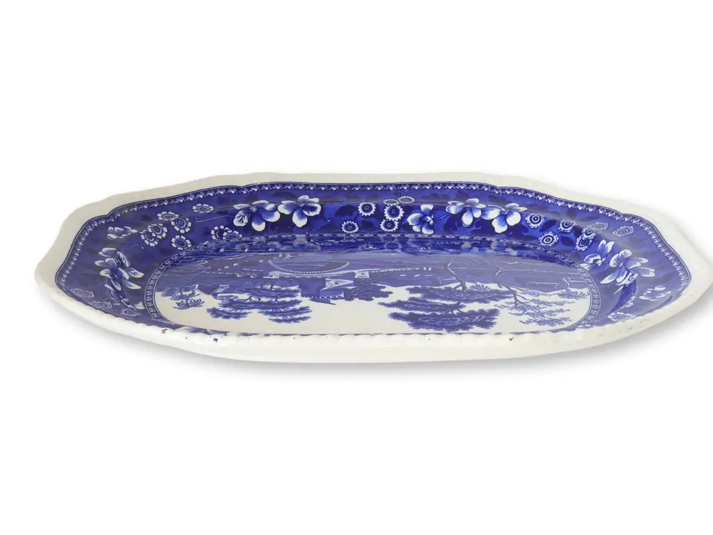 This stunning Copeland Spode Tower meat platter showcases the iconic deep cobalt blue and white pattern that has made Spode a cherished name in fine china. The gadrooned edges add a touch of elegance, making it a perfect centerpiece for your dining table. Whether you're a collector of Spode or simply appreciate exquisite craftsmanship, this platter is a must-have.