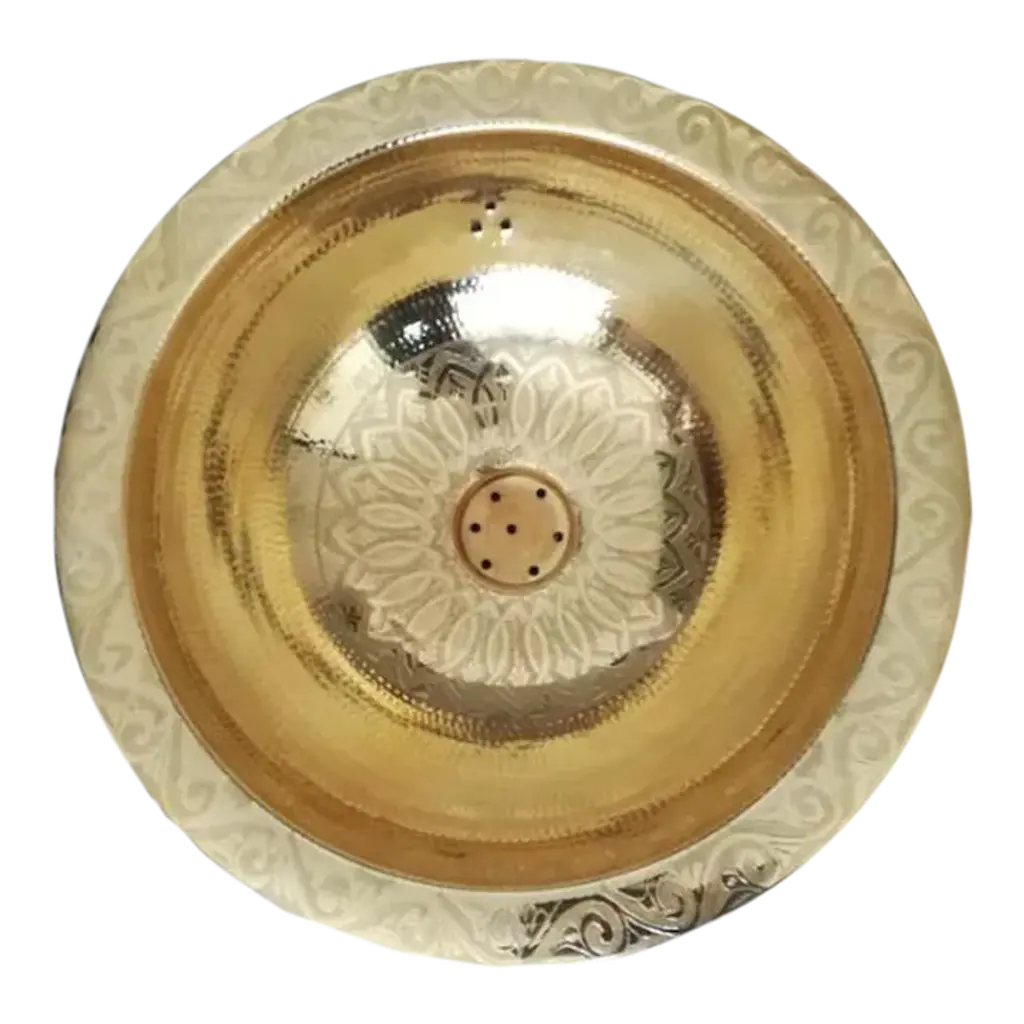 Available Sizes:13” Dia22" Dia31” Dia Round repousse copper lotus form plates. Inspired by the ancient Tibetan cloud motif. Hand hammered, hand chiseled copper with gold plated accents. Options for finish are copper, brass, silver, antiqued copper and vertigris. Customization is our speciality. Please do not hesitate to get in touch with us for any queries regarding size, material or design customization.Prices do not include shipping from India (for custom orders) or our MN warehouse (items from stock). That will be additional.