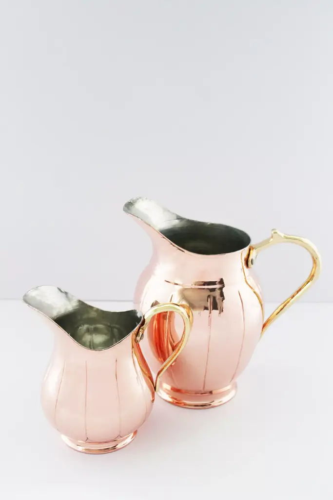 **Please note that all sales are final.**Inspired by a fluted ironstone pitcher curated from 19th century France, we simply knew it would be spectacular reproduced with copper! It features a fluted pattern all the way around the body and brass handle. The unique character of this handmade pitcher will surely add charm to a table set for two or your favorite floral arrangement. It will be an unexpectedly delightful accent to any room in your home!Coppermill Kitchen is dedicated to finding only unique and special copperware that has both style and a story to tell for generations to come. * Made of Copper* Made In Turkey* Care instructions included with item.* Coppermill Kitchen products are HANDMADE, blending timeless craftsmanship with a vintage-inspired design#### *Dimensions** 8.25"W with handle x 8"Tall