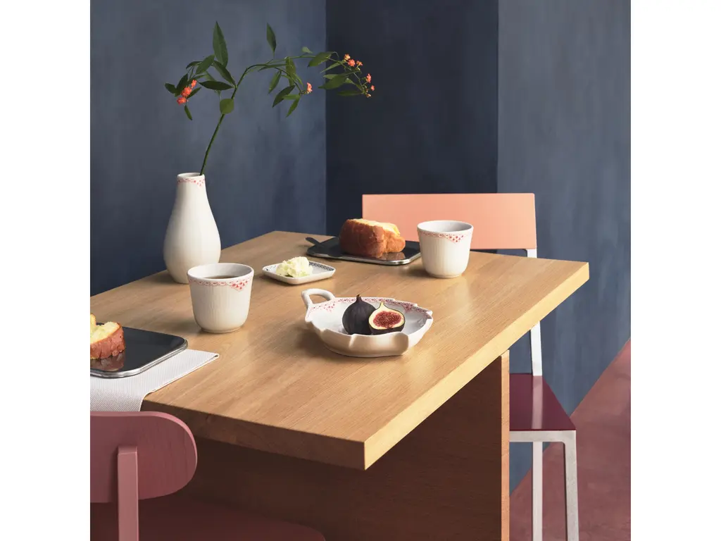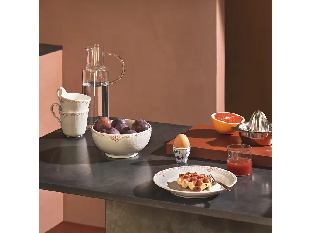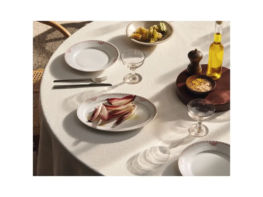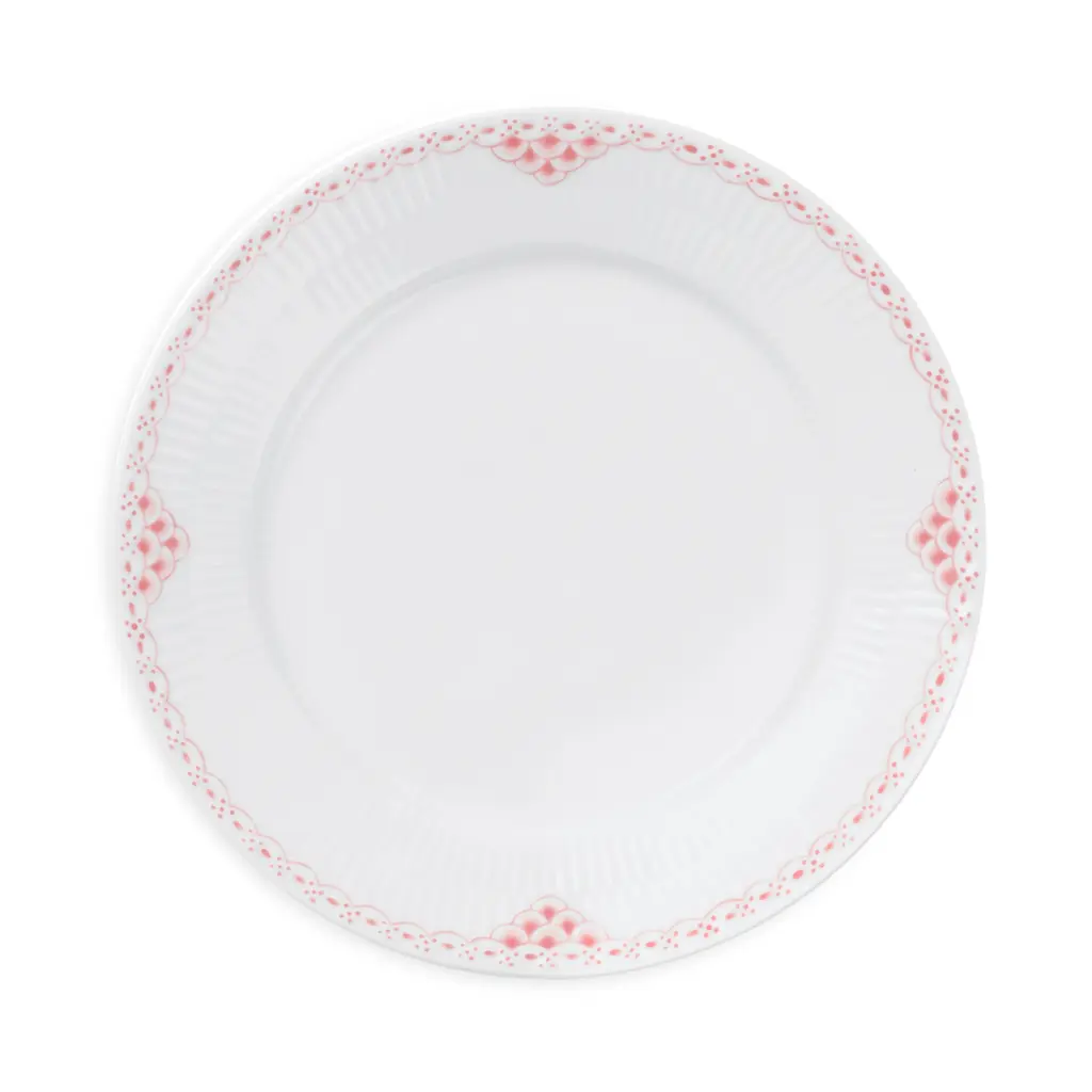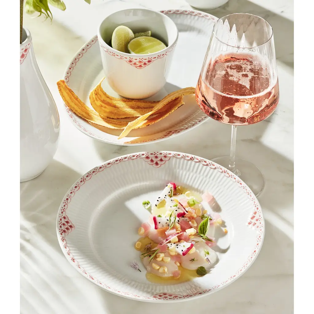 The Coral Lace collection gets its elegant half lace border from the 1978 Princess collection. The soft coral color circles the fluted porcelain surface creating a simple and delicate look.