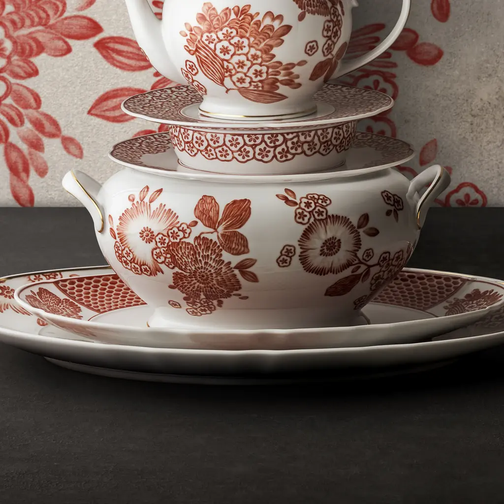 Introducing the elegant Coralina Charger Plate, a sophisticated addition to your tableware collection, expertly designed by the renowned Oscar de la Renta. This refined charger plate features the distinguished floral motifs found throughout the entire Coralina collection, inspired by a dress created for Vogue magazine in September 2006. The beautiful design embodies the sophistication and grandeur that are characteristic of the designer’s celebrated career. Crafted from the finest porcelain, the Coralina Charger Plate ensures both beauty and durability. The rich, vibrant colors make this charger plate an alluring piece for setting the stage for your dining experience, adding an elegant touch to your table setting. To preserve its elegance and longevity, we recommend hand washing. If you prefer to use a dishwasher, opt for short cycles at low temperatures and avoid frequent use to maintain its pristine condition. Elevate your dining experience with the captivating Coralina Charger Plate, a stunning testament to Oscar de la Renta’s artistic brilliance.