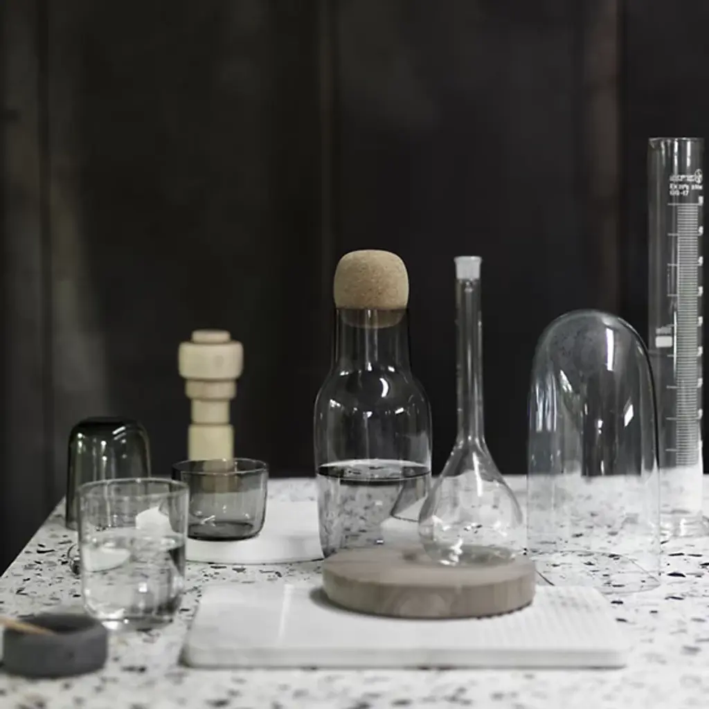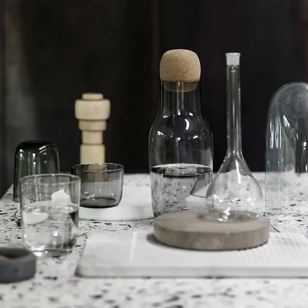 The Corky Carafe from Muuto redefines simplicity in glassware. This mouth-blown and hand-polished vessel is crafted by Andreas Engesvik. The carafe's clean lines and transparent body allow its contents to become part of the design. Its crowning feature – a granulated cork stopper – adds a tactile element and a nod to traditional wine storage. Whether gracing a formal dining table or brightening up an office desk, this piece is dishwasher safe, combining practicality with enduring style.