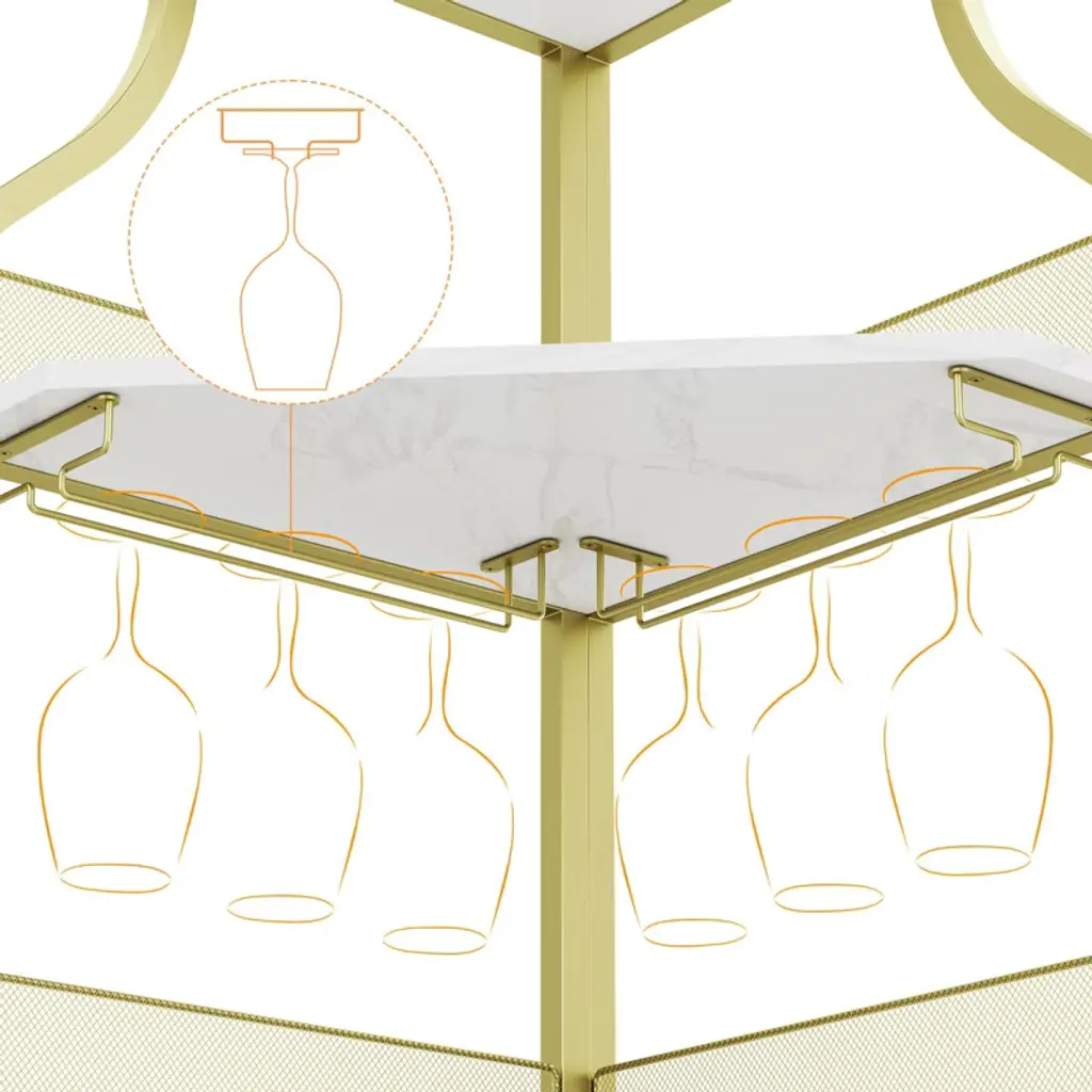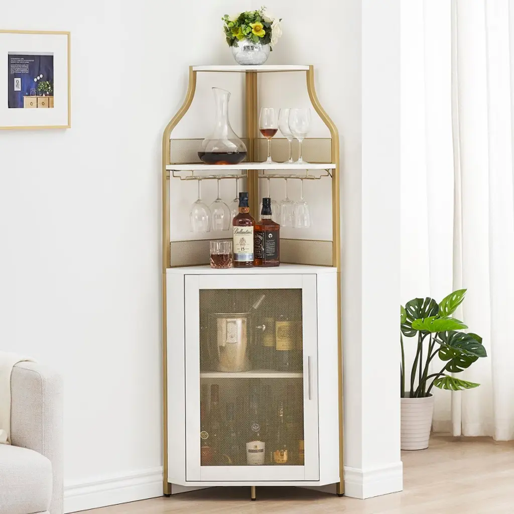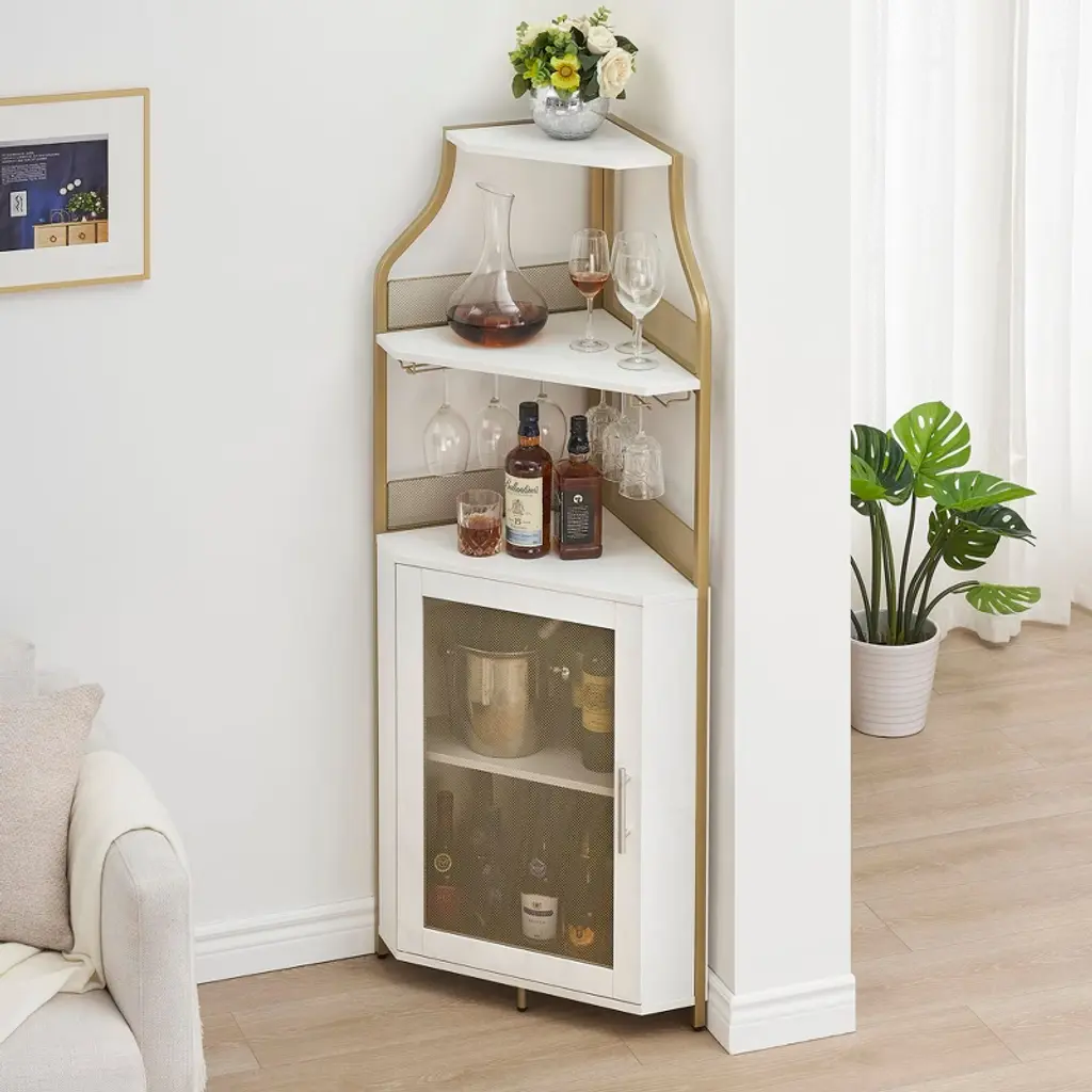 Corner Wine Bar Cabinet With Drawer And Storage Shelves, Bar Cabinet With Glass Holder Small Sideboard And Buffet Mesh Door For Liquor And Glasses
