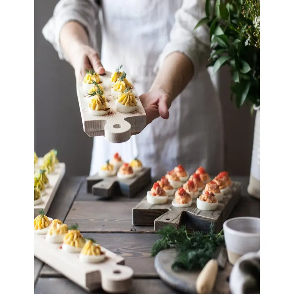 A clever way to store or display fresh, hardboiled, or deviled eggs. Slide easily in and out of the fridge, set out on the breakfast table, or perch on the countertop. A true farm-to-table addition to any kitchen.