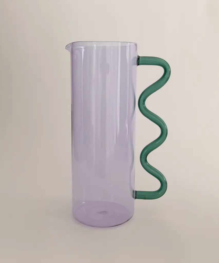 Elevate your drinkware collection with the Costa de Sol Glass Pitcher. Featuring a transparent colored design, this pitcher is crafted with a wavy handle that adds a touch of elegance and fluidity to its shape. The handle is in a darker shade than the pitcher, creating a stunning contrast. With a narrow spout for controlled pouring, this pitcher is perfect for serving a variety of beverages, from water and juices to cocktails, with both style and precision.