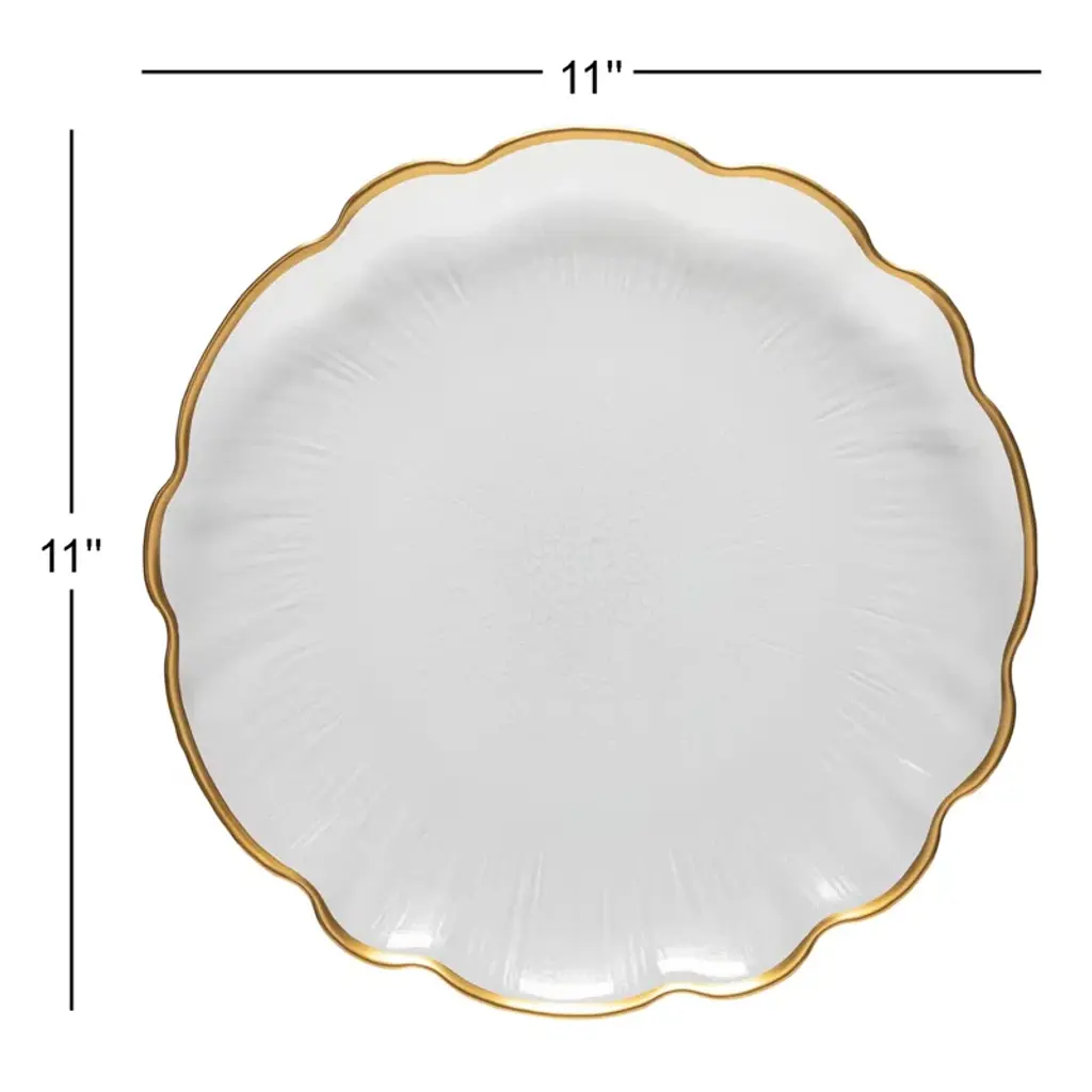 With impeccable glowing rims and beautiful textures, they all bring luster, elegance, and an Italian flair to any table setting. Handmade in Turkey, with real gold, each piece showcases the perfect fusion of artistry and craftsmanship. These items can be used as charger plates, trays, or decorative centerpieces.