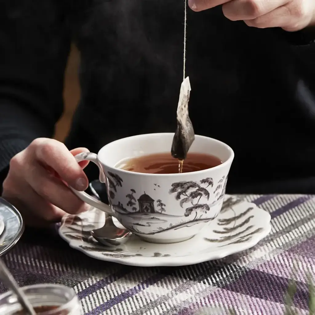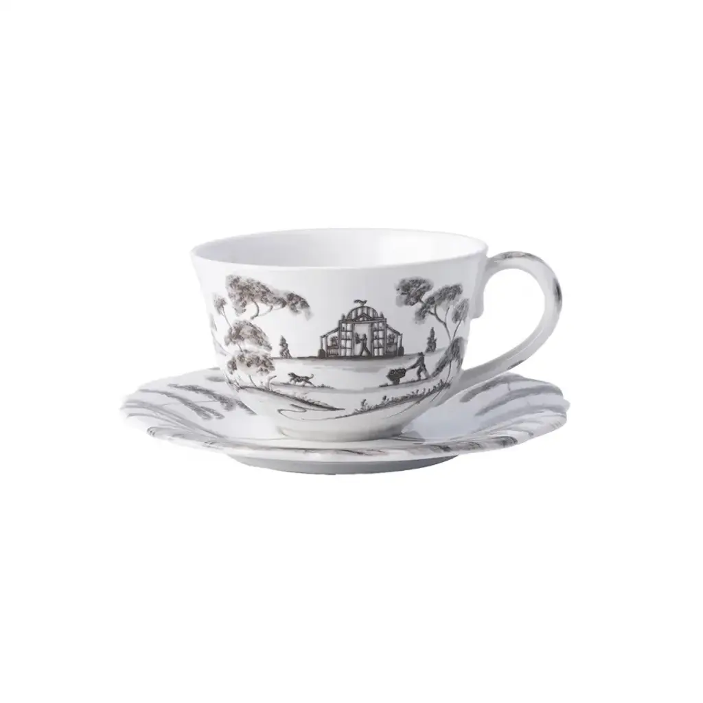 From our Country Estate Collection - We admit to a modicum of Prejudice but remain devotedly Prideful in our charming teacup that evokes positively romantic Senses and Sensibilities. Open the gate to an English garden a la Mansfield Park, sit in the shade with your cup of tea, and enjoy the verdure, for the most perfect of life's refreshments. Featuring: Tea Party Tent, Reading Pavilion, and Conservatory. Based in Connecticut, Juliska is committed to bringing elegant European design into our modern homes. Since its founding in 2001, when David and Capucine Gooding began by working with artisans outside of Prague to reproduce antique Bohemian glass pieces, every piece from Juliska has shared a rich heritage spanning six centuries of European design. Juliska's creations are timeless, romantic and effortlessly chic.