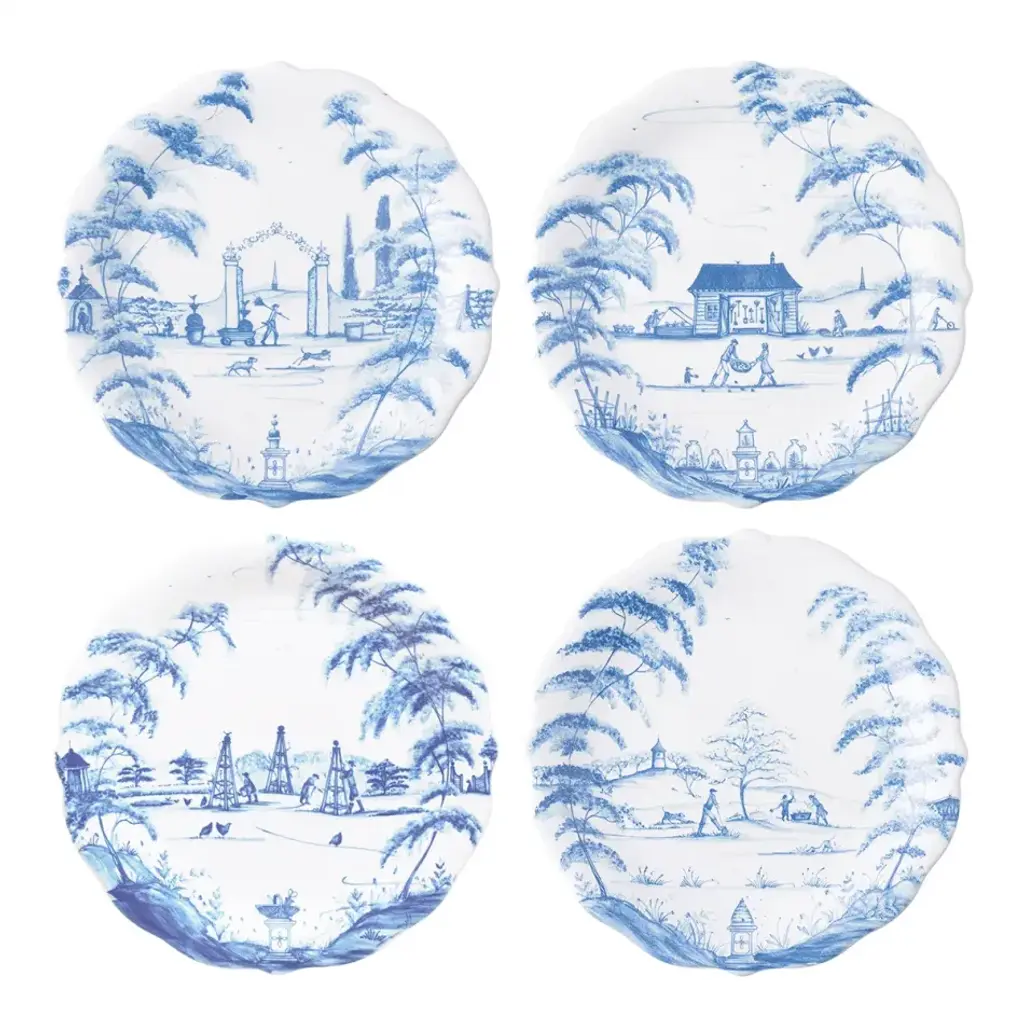 Country Estate Party Plates, Assorted Set Of 4