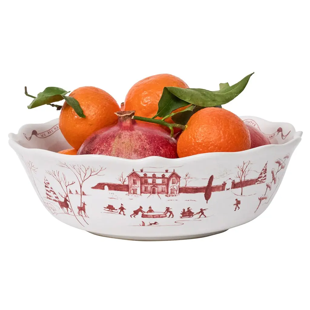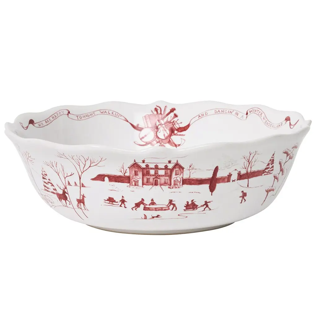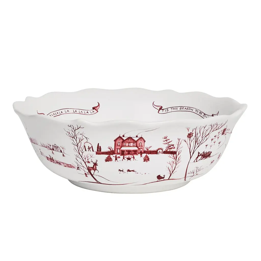 Country Estate Winter Frolic 11" Serving Bowl, Ruby