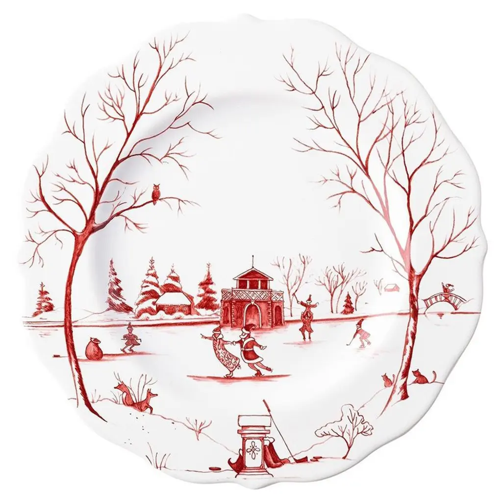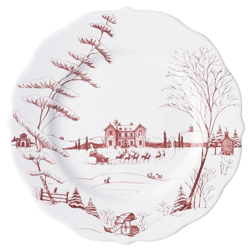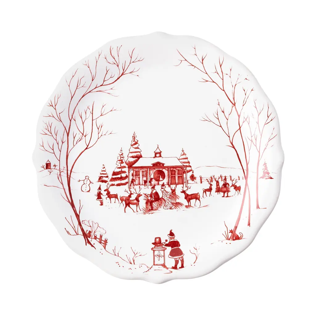 Country Estate Winter Frolic "Mr. & Mrs. Claus" Ruby Party Plates Set Of 4