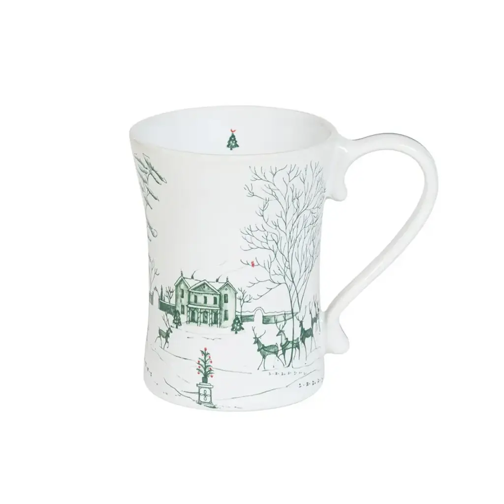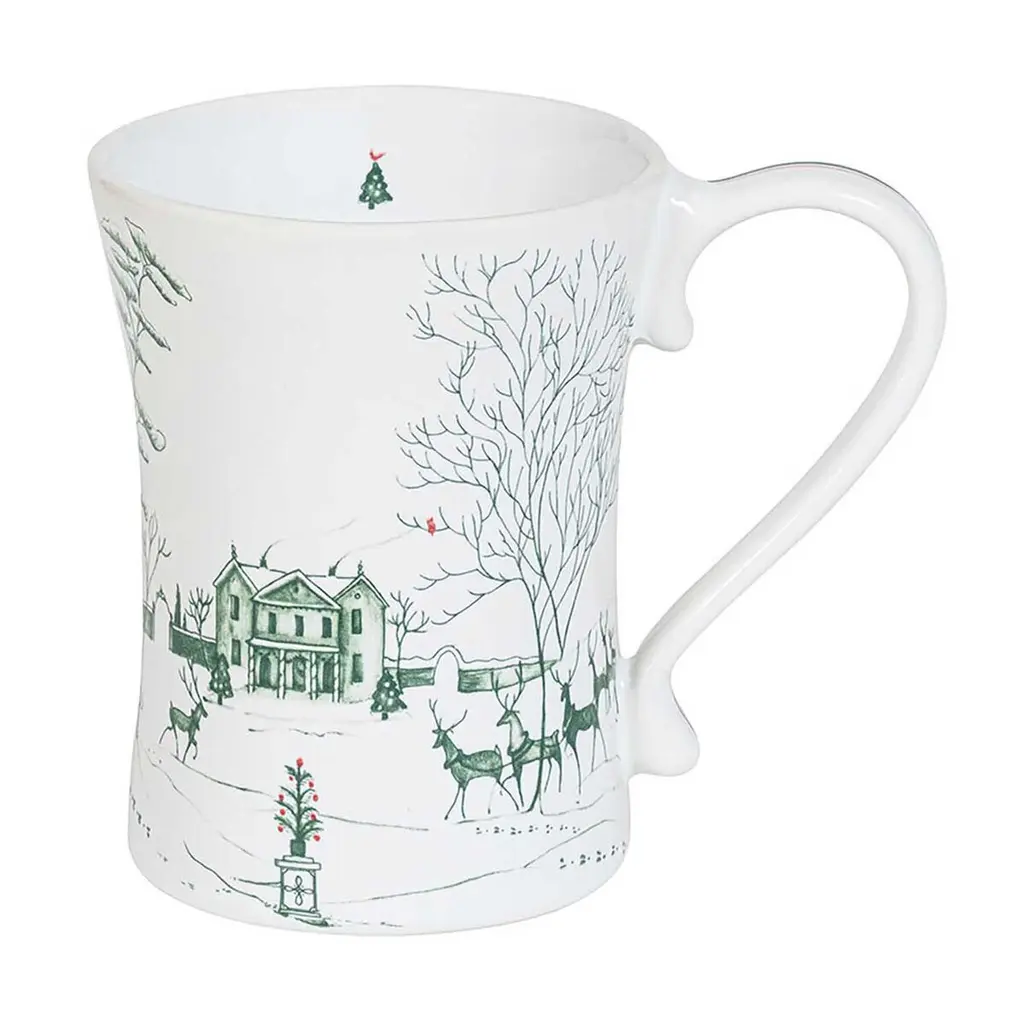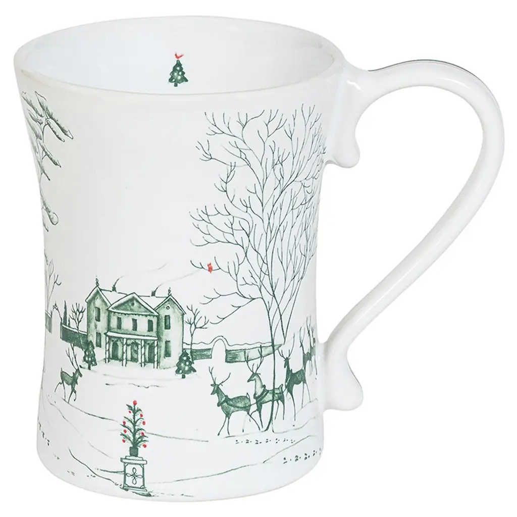 Our charming English Country Estate is snow covered for the holidays! In this latest chapter of the estate at Christmastime, Santa & Merry celebrate with all the North Pole inhabitants. This generously sized mug features illustrations of the elves ice skating on the pond outside the Boathouse, and Santa & Merry walking arm and arm through the estate. Based in Connecticut, Juliska is committed to bringing elegant European design into our modern homes. Since its founding in 2001, when David and Capucine Gooding began by working with artisans outside of Prague to reproduce antique Bohemian glass pieces, every piece from Juliska has shared a rich heritage spanning six centuries of European design. Juliska's creations are timeless, romantic and effortlessly chic.