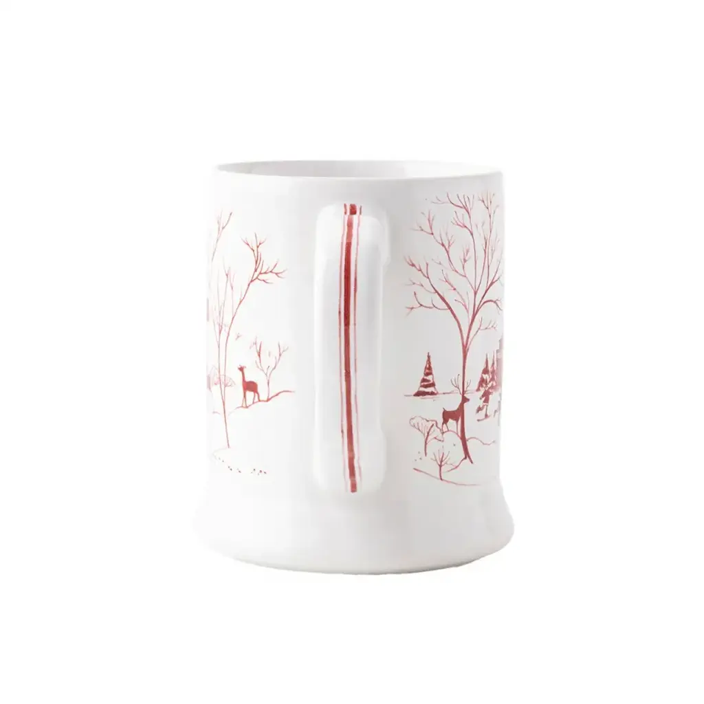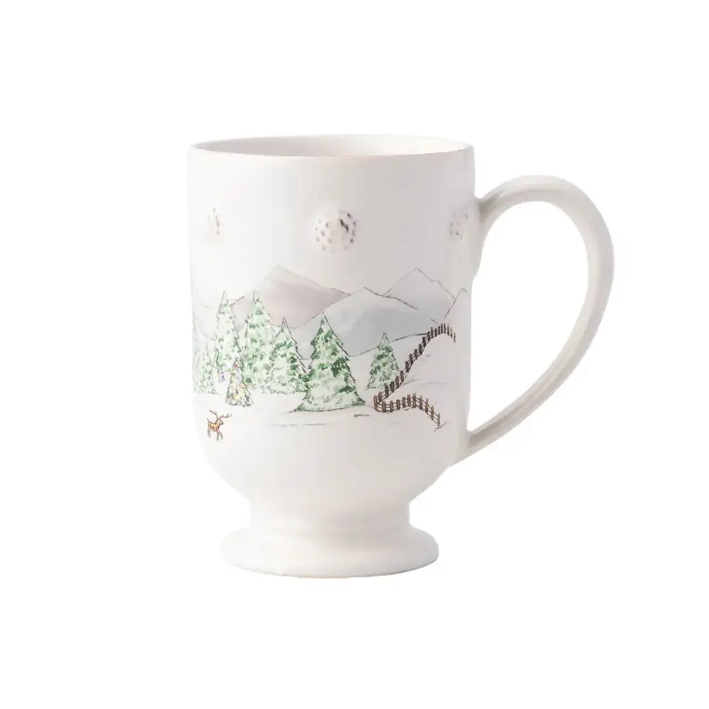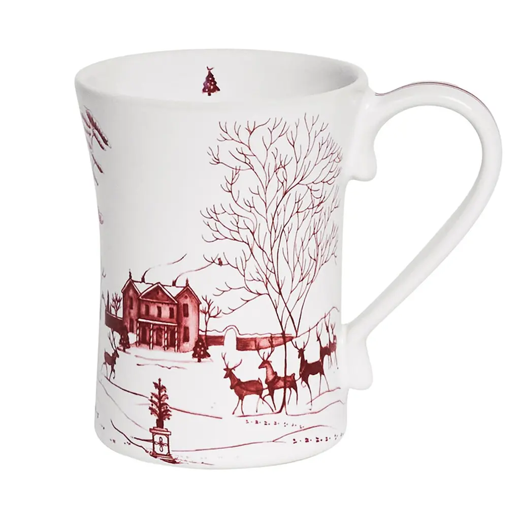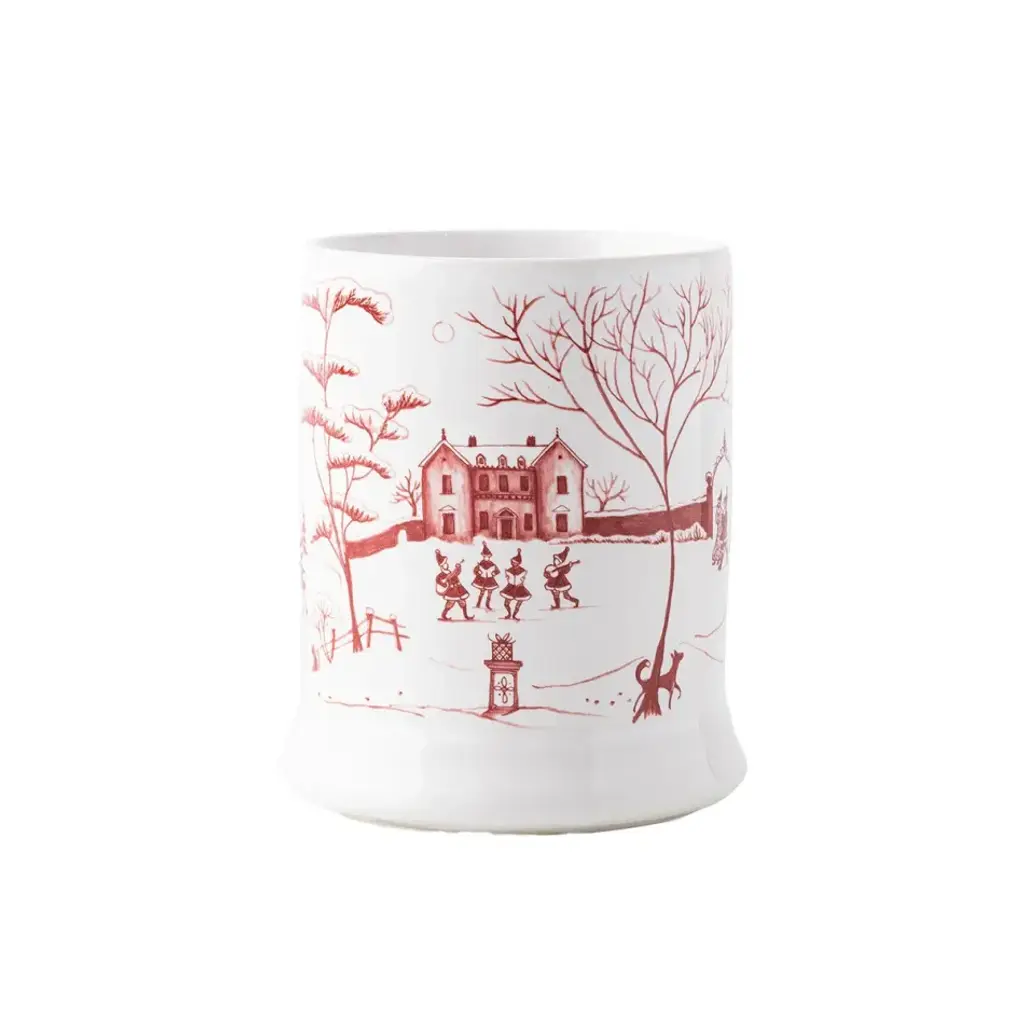 Our charming English Country Estate is snow covered for the holidays! In this latest chapter of the estate at Christmastime, Santa & Merry celebrate with all the North Pole inhabitants. This generously sized mug features illustrations of the elves ice skating on the pond outside the Boathouse, and Santa & Merry walking arm and arm through the estate. Based in Connecticut, Juliska is committed to bringing elegant European design into our modern homes. Since its founding in 2001, when David and Capucine Gooding began by working with artisans outside of Prague to reproduce antique Bohemian glass pieces, every piece from Juliska has shared a rich heritage spanning six centuries of European design. Juliska's creations are timeless, romantic and effortlessly chic.