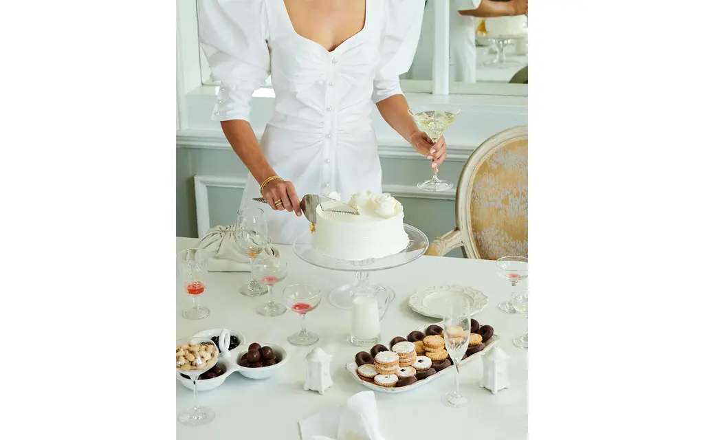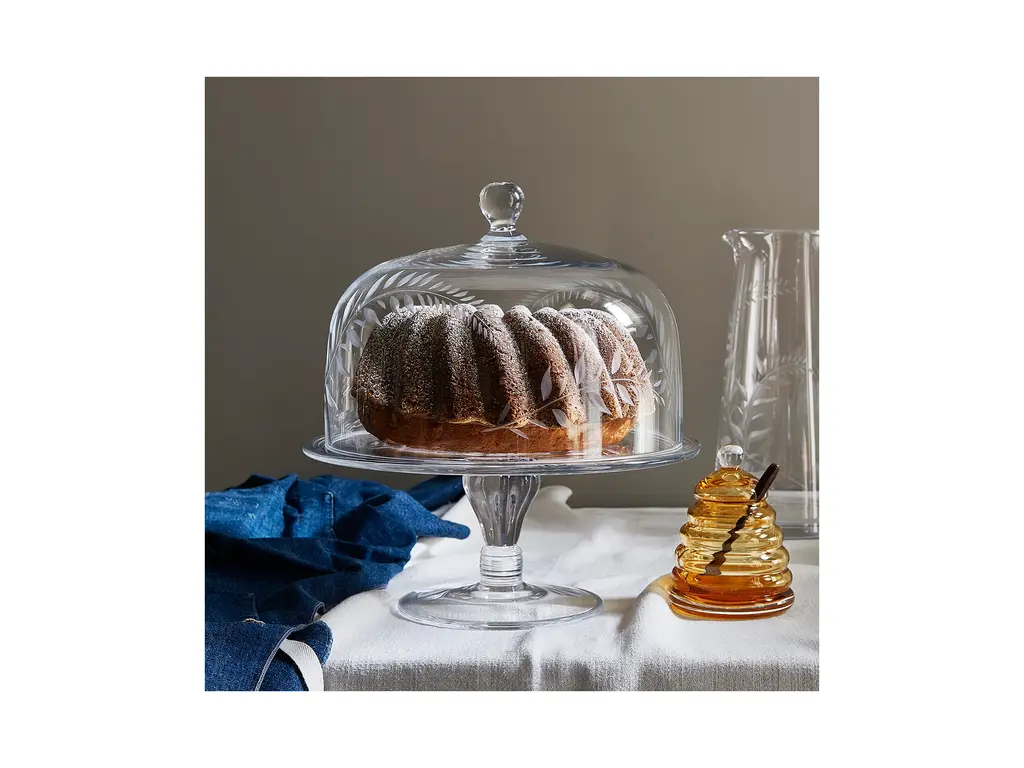Hand engraved with a sprawling botanical print, this cake stand makes a striking centerpiece for your dessert table.