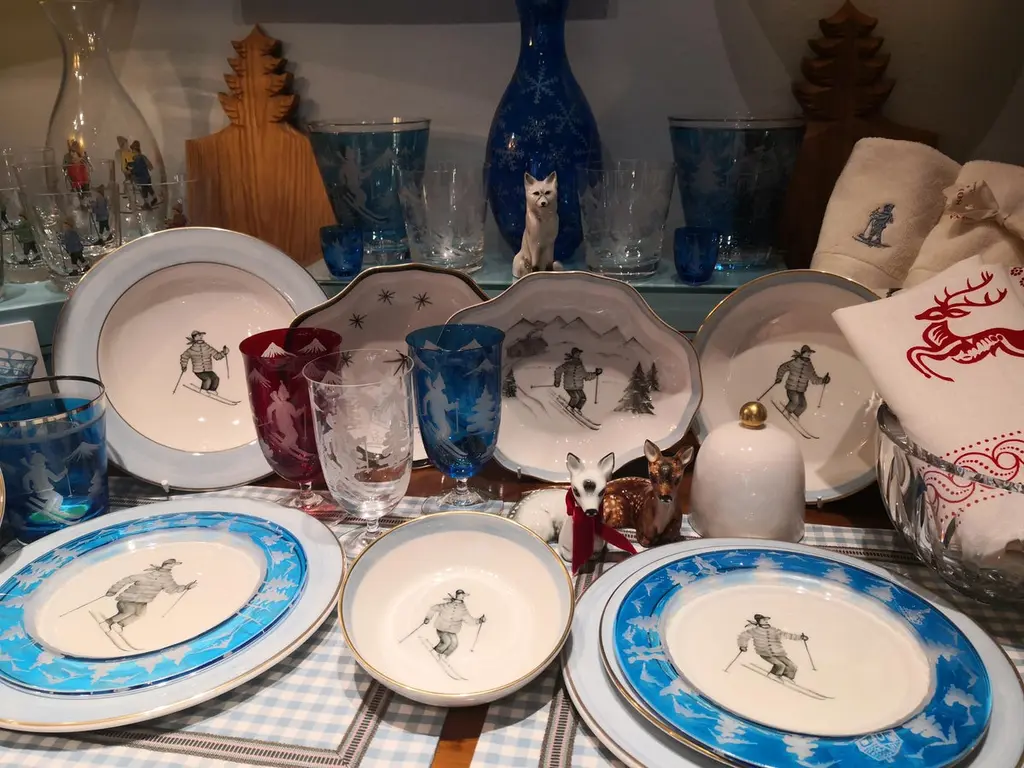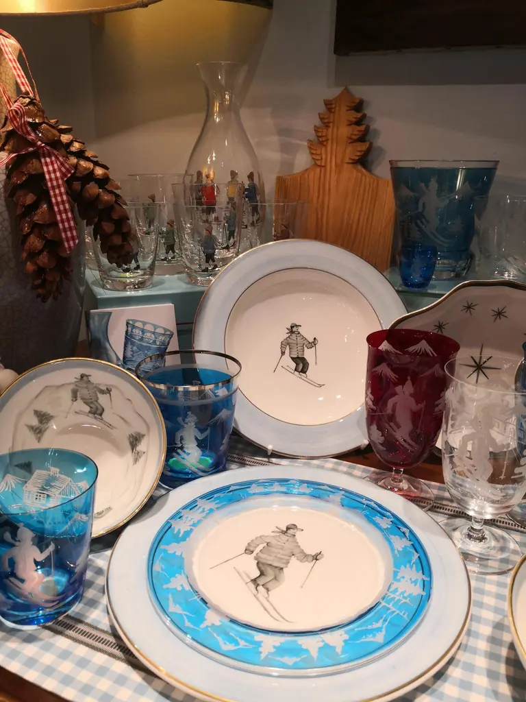 Country Set Of Six Glass Plates Blue Skier Decor Sofina Boutique Kitzbühel
