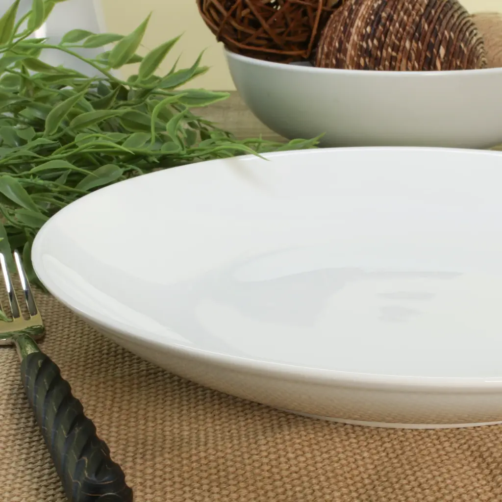 Elevate your dining experience with the BIA Cordon Bleu Coupe Entree Plates. This set of 4-11.5" plates exudes sophistication with their classic white color, clean lines, and simple shape, perfect for casual or fine dining, buffet-style meals, entertaining guests, or special occasions. Crafted from high-quality porcelain, these plates are durable, making them ideal for everyday use. Dishwasher and microwave safe, they bring versatility to your table settings. Enhance your collection with BIA Cordon Bleu's timeless designs that blend seamlessly with any decor. BIA Cordon Bleu: Designed With Modern Sensibility For Wherever You Live, However You Cook, and Whenever You Entertain.