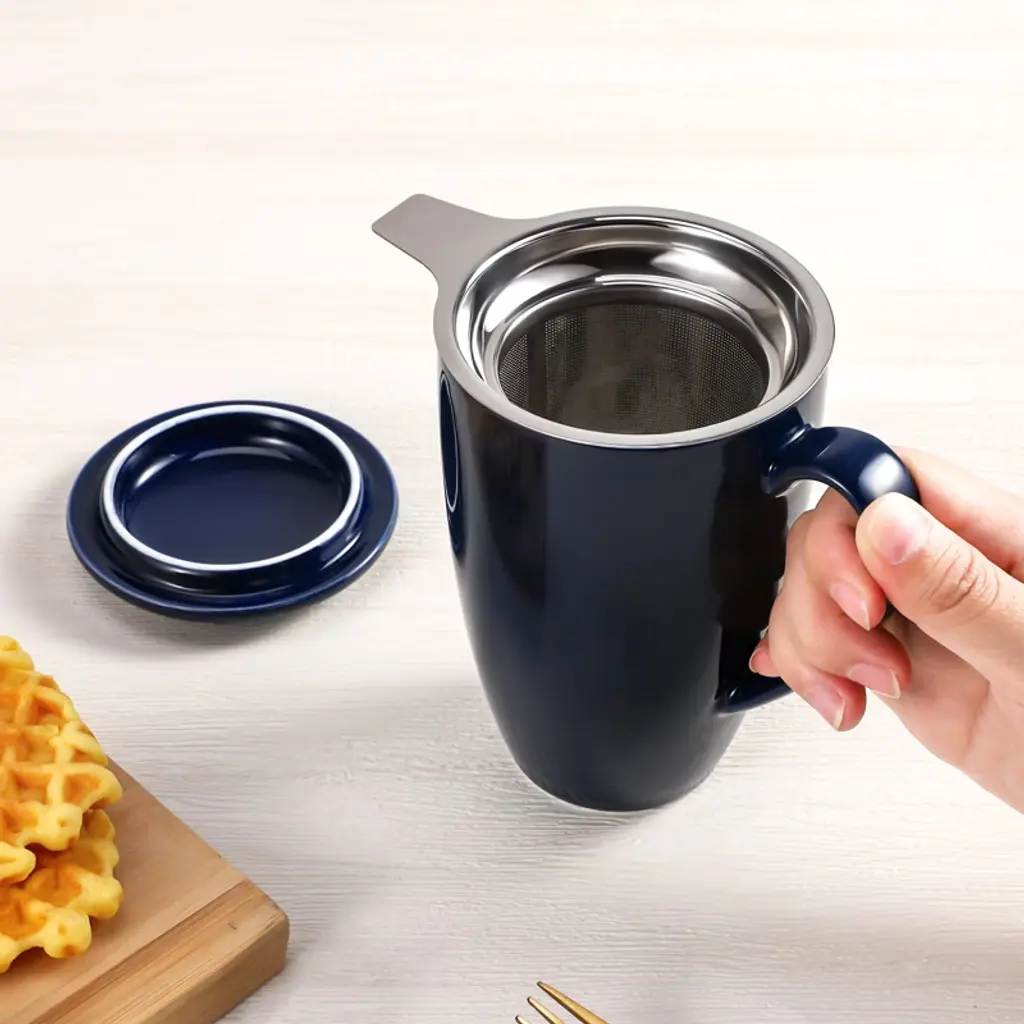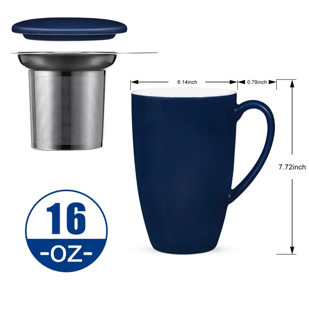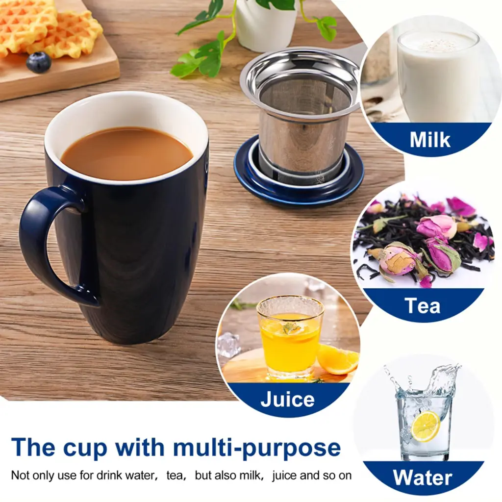Enjoy your favorite hot drinks with the COZONY ceramic tea cup with removable infuser and lid, designed for brewing loose leaf tea, coffee, cocoa, or milk with ease. Its 16 oz capacity makes it perfect for daily use, while the microwave-safe and durable ceramic construction ensures both convenience and long-lasting quality. Featuring a stylish lid to retain heat and a fine mesh infuser for a smooth brew, this tea mug is an ideal choice for home, office, or as a thoughtful gift for tea lovers.